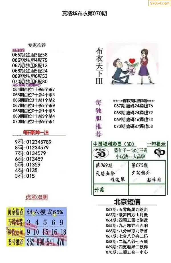 (8)26年070期今日3d各类彩报汇总