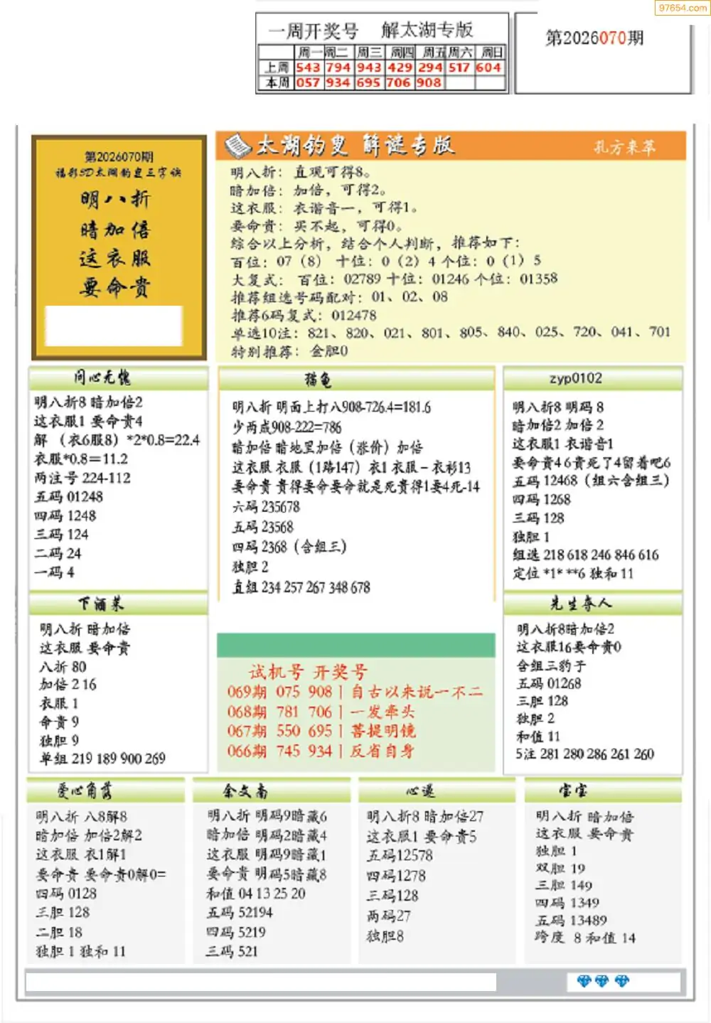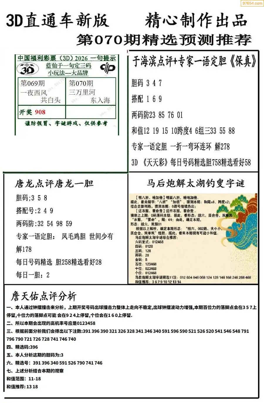 (2)26年070期本期3d图迷汇总_福彩3D图谜总汇图