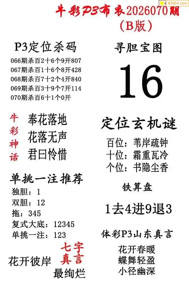 牛彩布衣070期精华版图谜