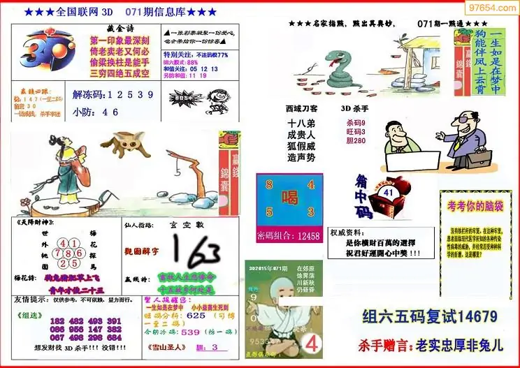071期鑫马分析+杀手报3d图谜