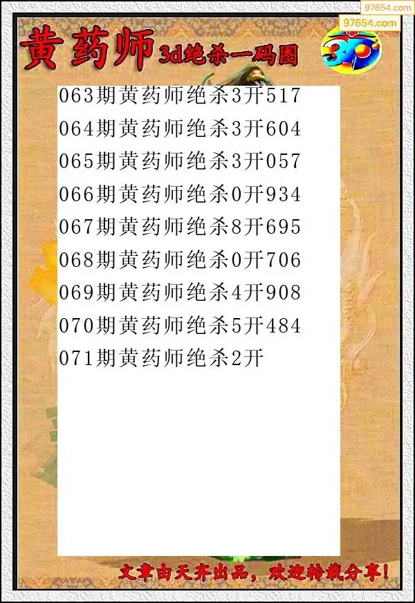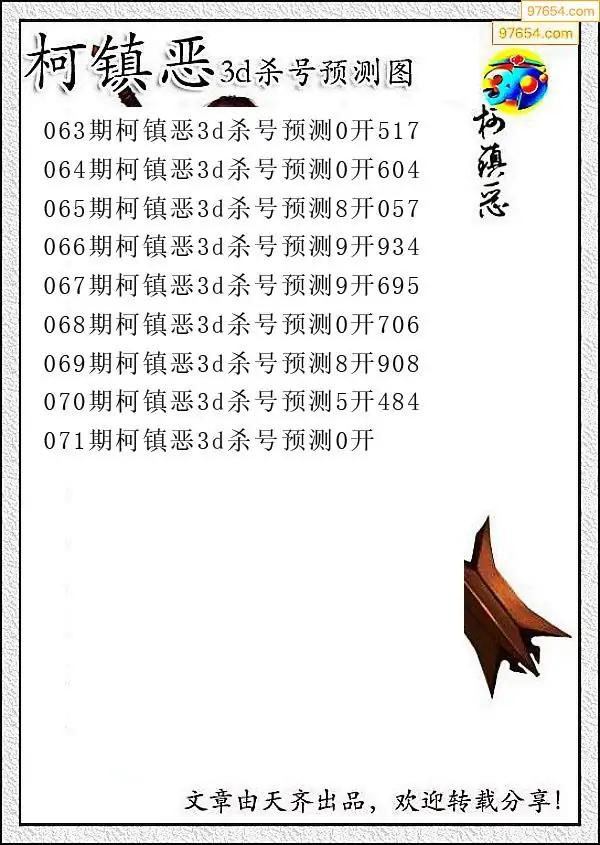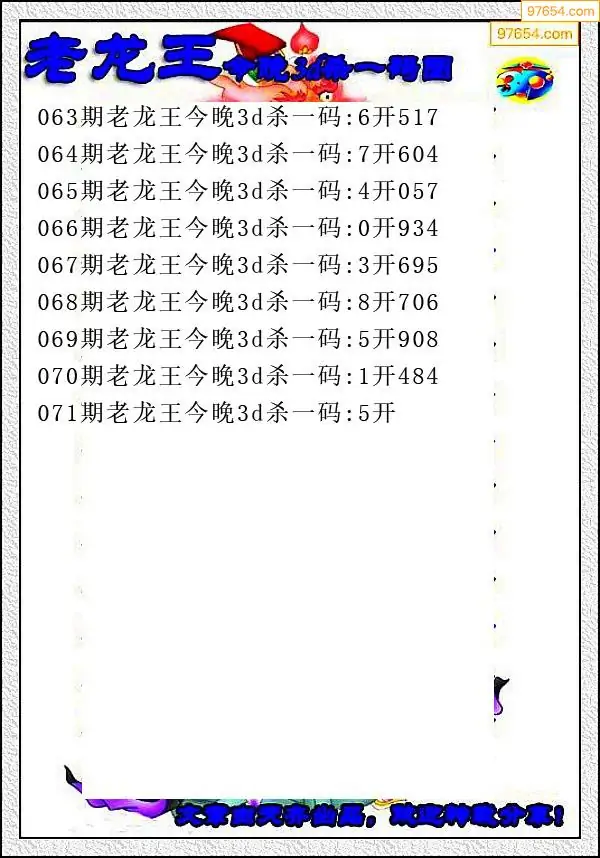 071期97654本站收集杀码出号预测
