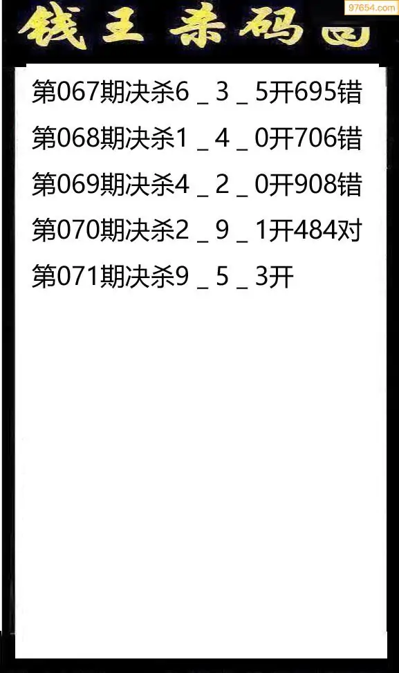 071期97654本站收集杀码出号预测