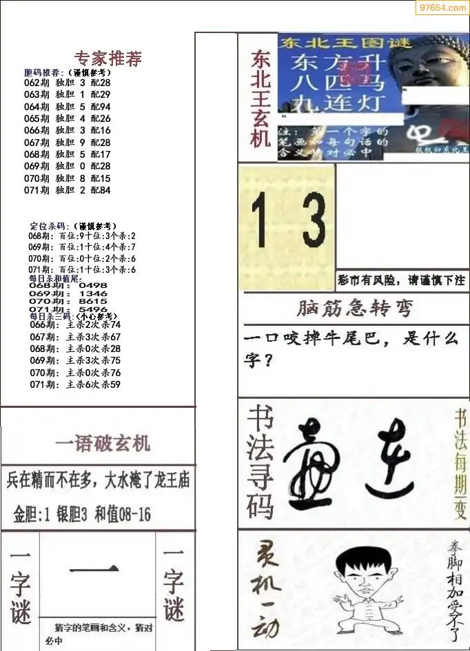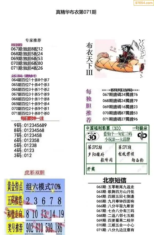 福彩071期3d真精华布衣+布衣早报(转载)