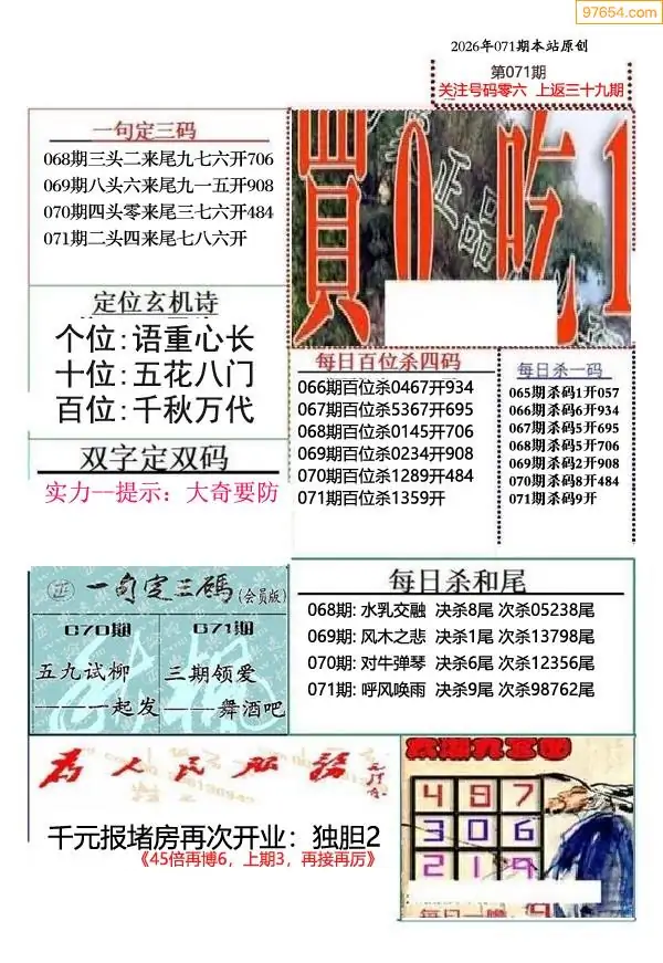 26年071期千元报每日推荐(新版)