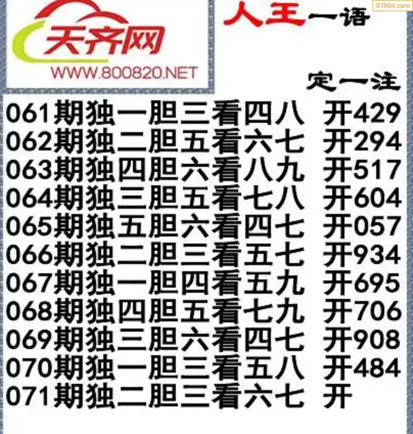 福彩3d左岸清风26年071期一语定一注