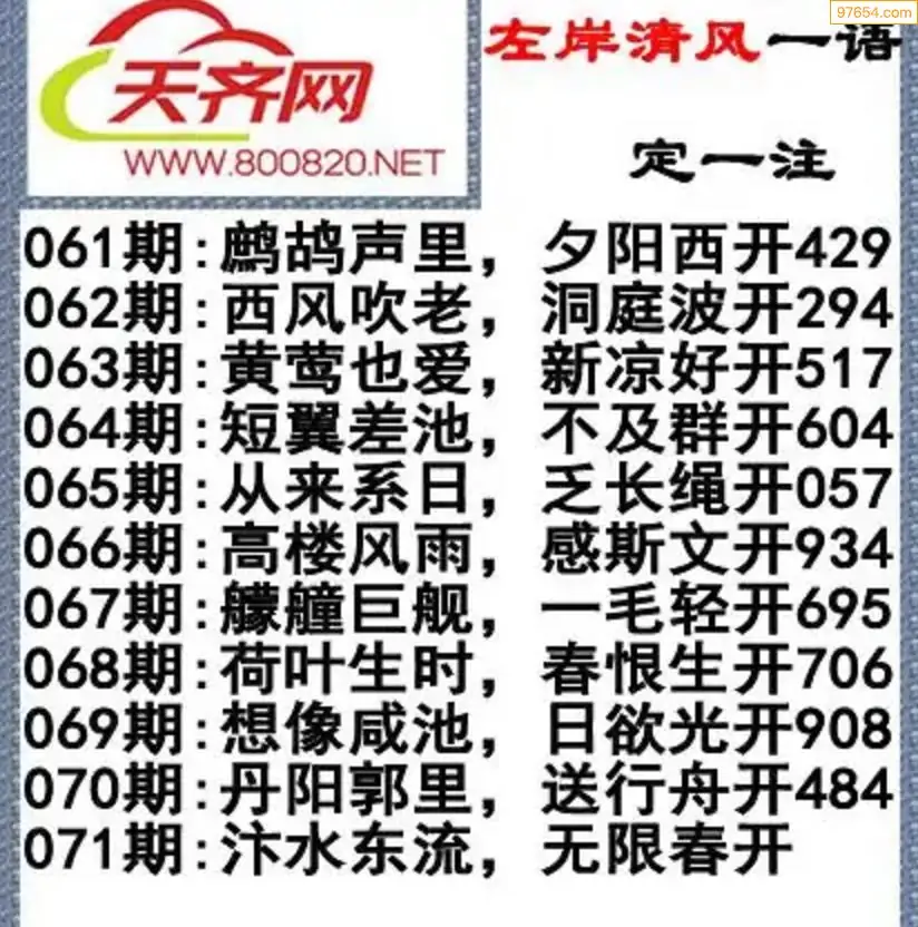 福彩3d左岸清风26年071期一语定一注