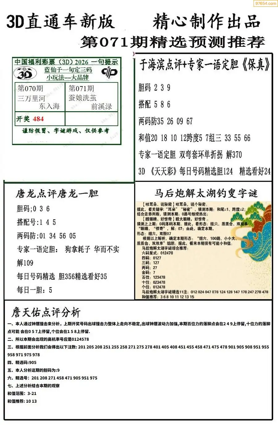 26年071期3D各板块资料整合汇总