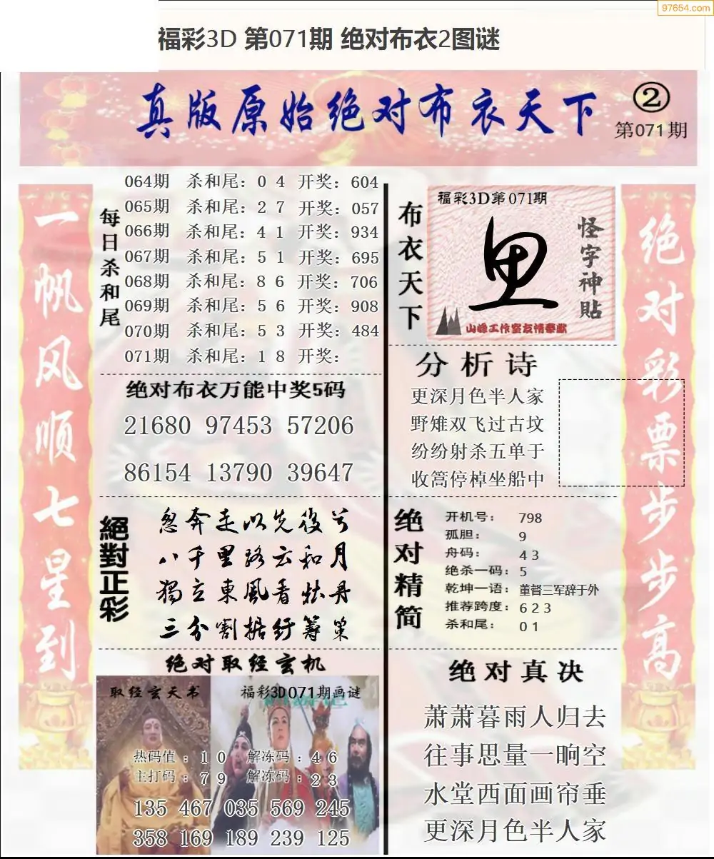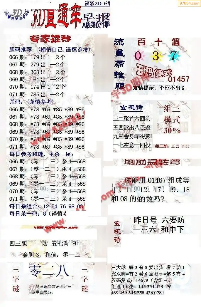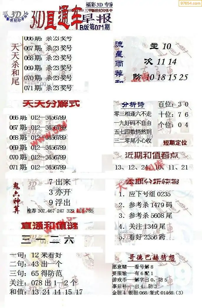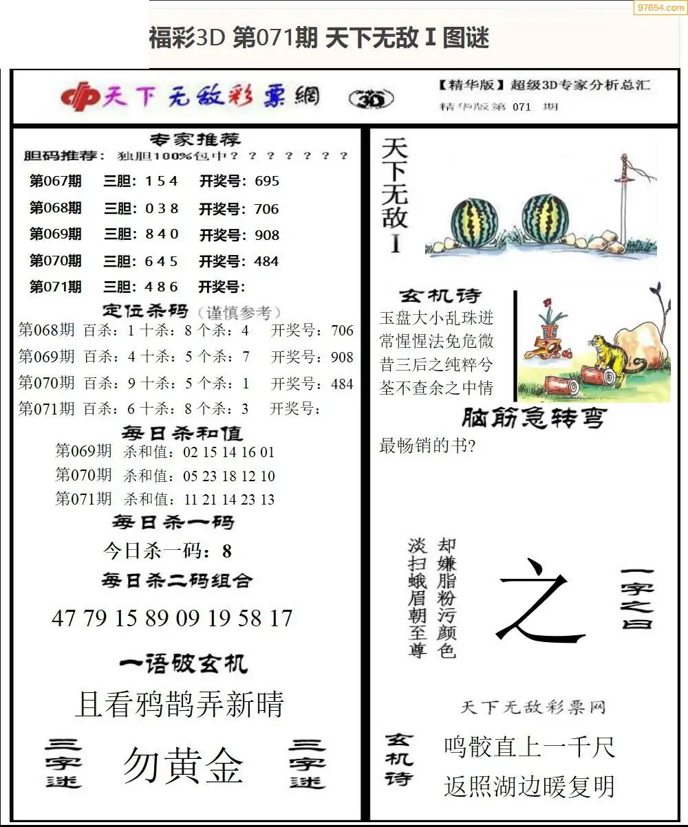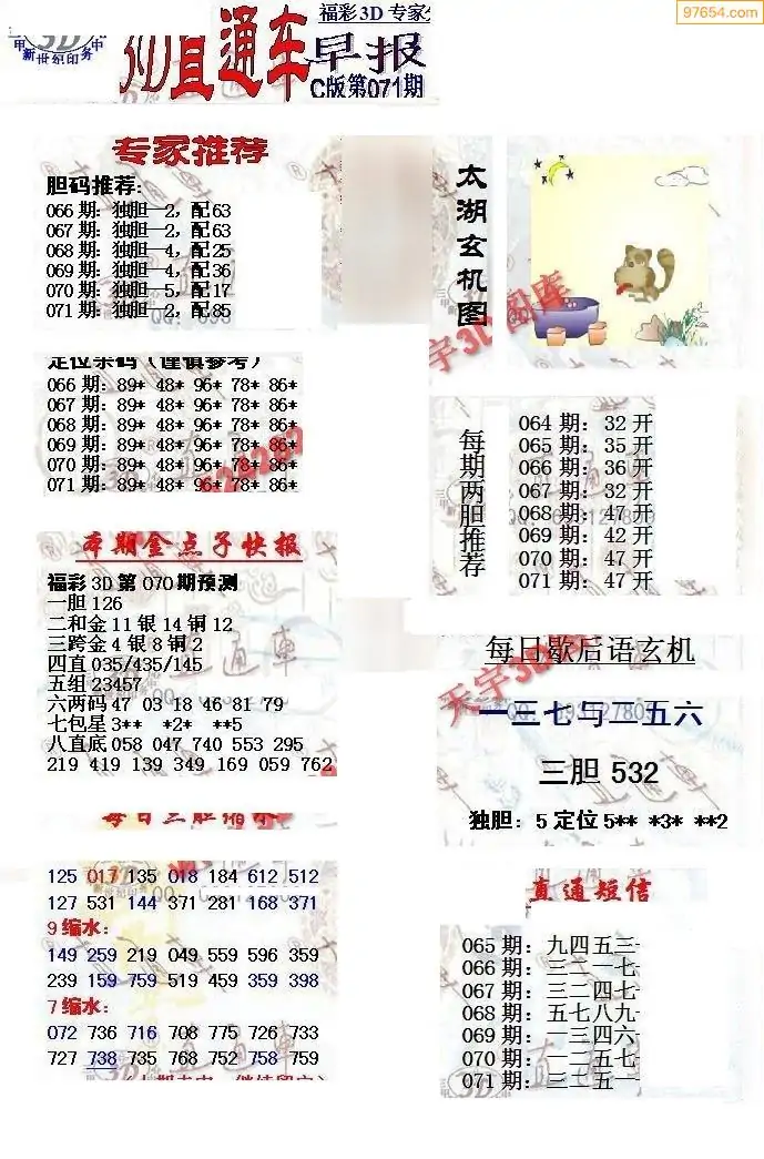 26年071期3d选号彩报图谜画谜