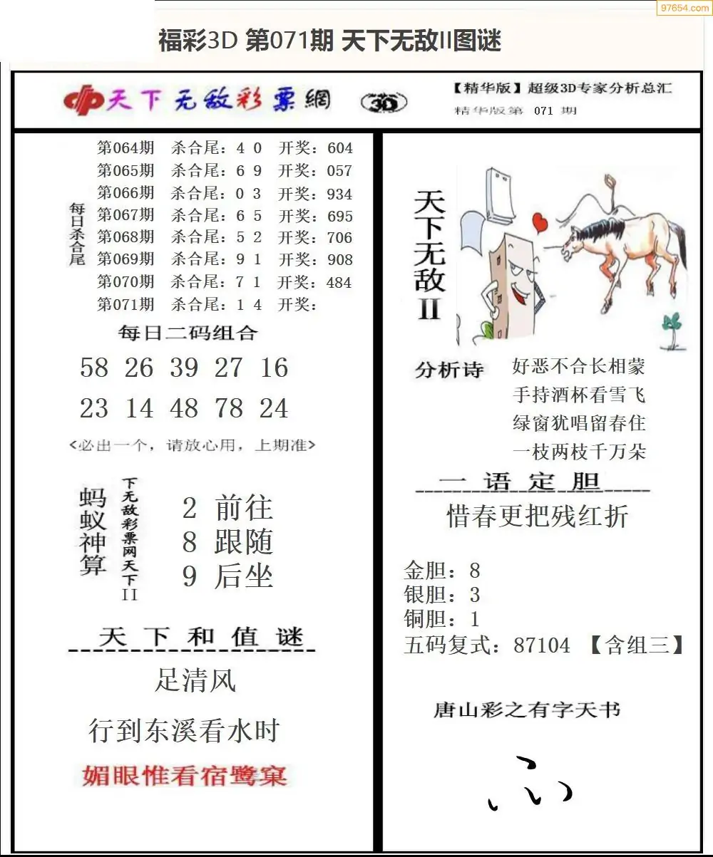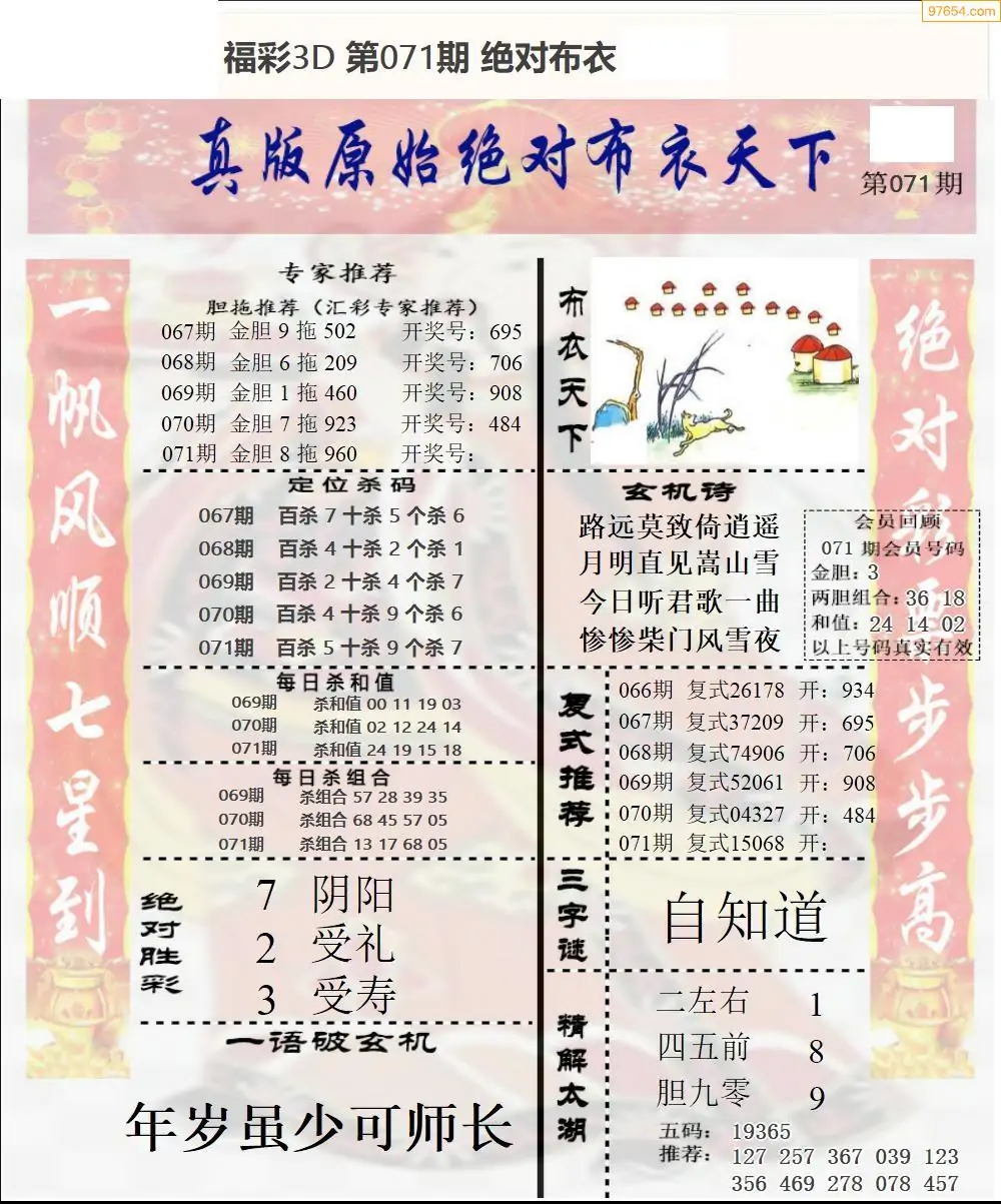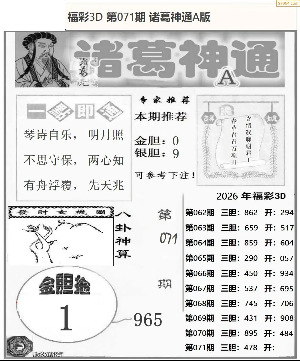26年071期3d选号彩报图谜画谜