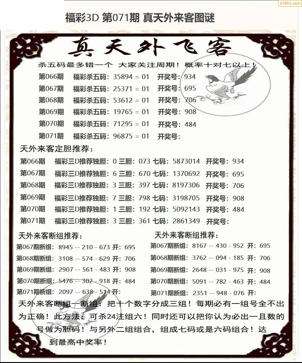 26年071期福彩3d真天外飞客图