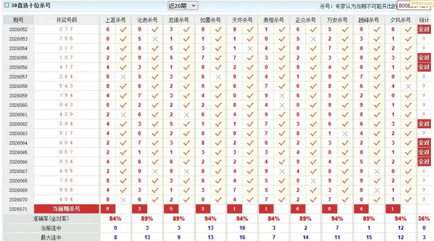 胡八一3d26年072期杀号一胆 9连中
