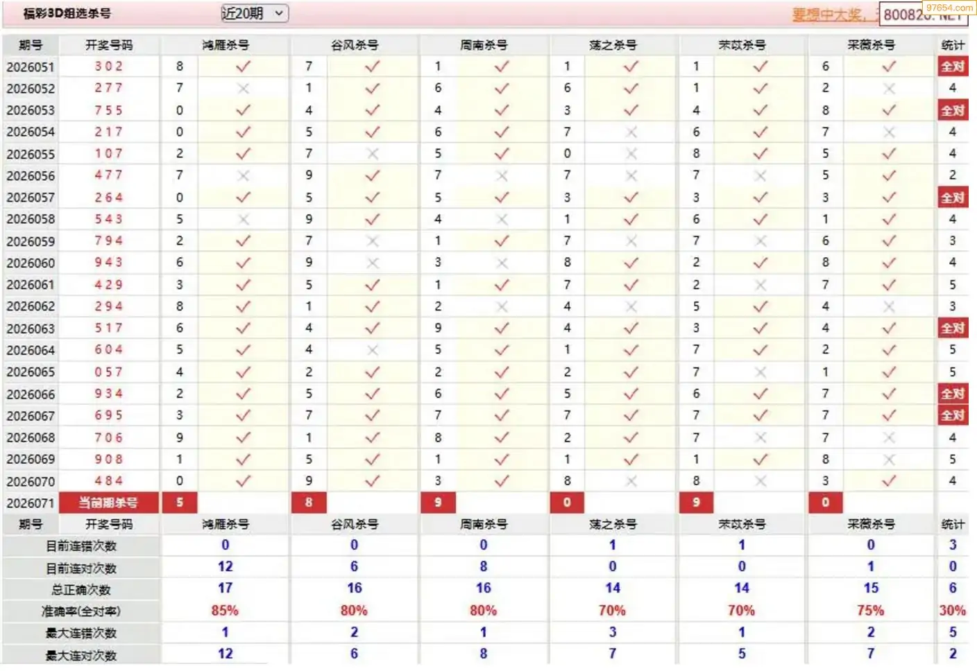 胡八一3d26年072期杀号一胆 9连中