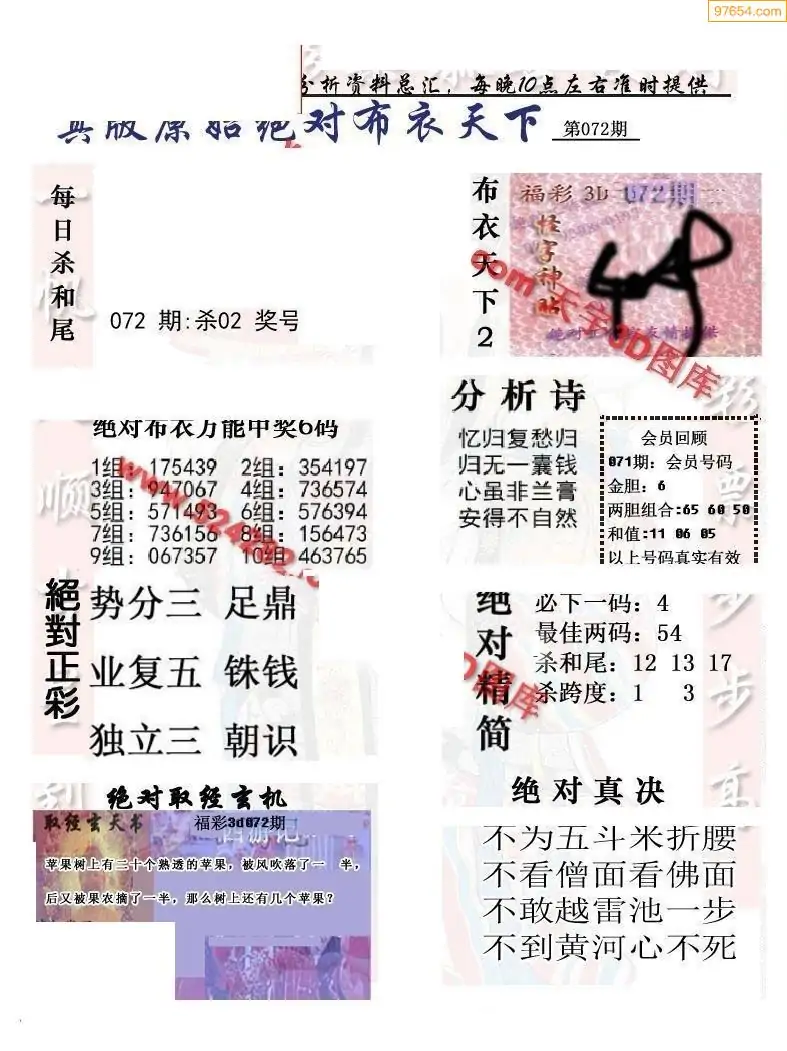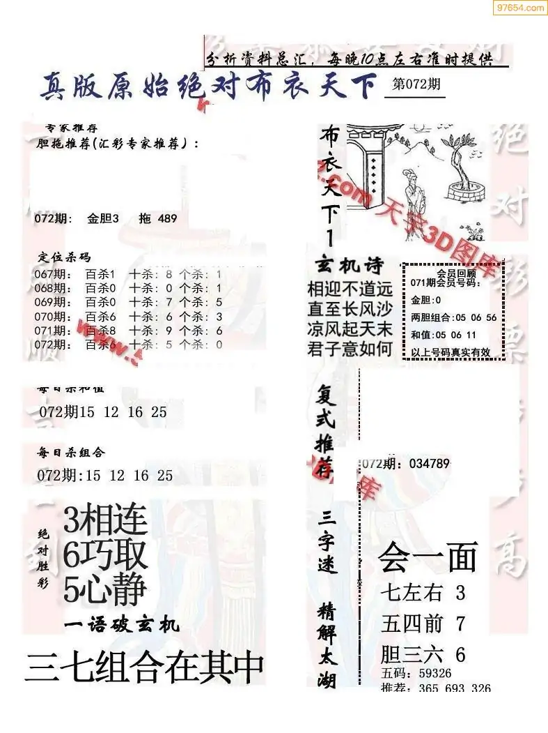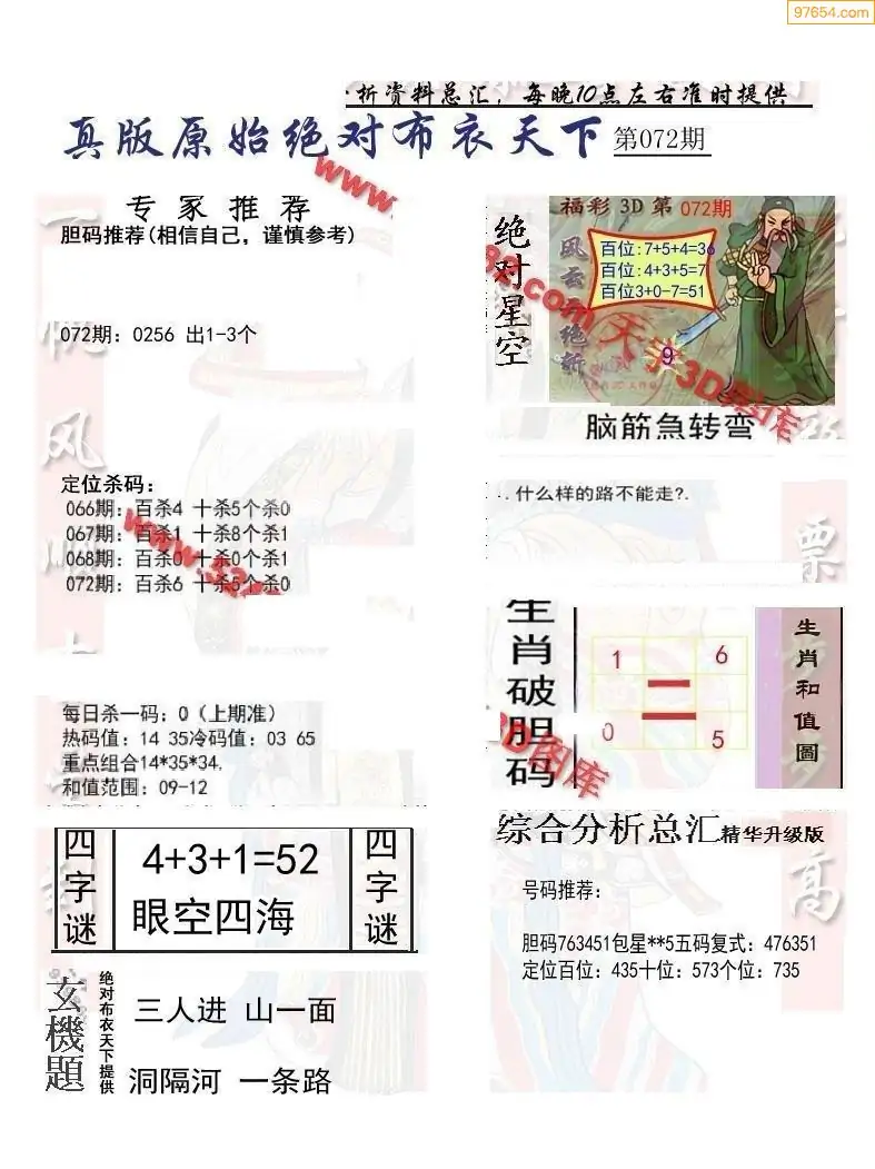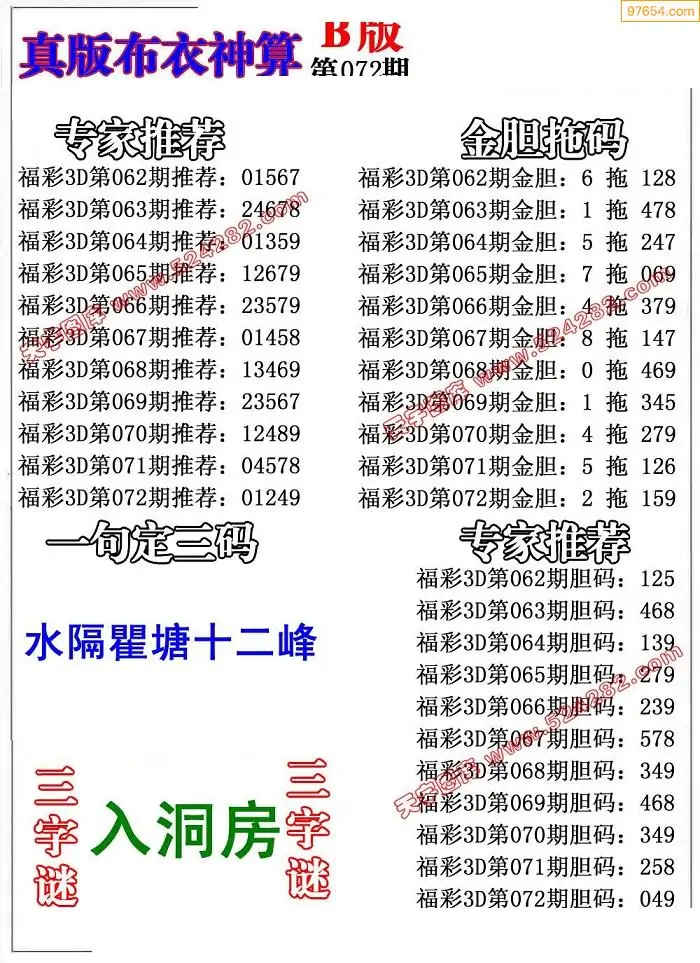 (2)26年072期本期3d图迷汇总_福彩3D图谜总汇图