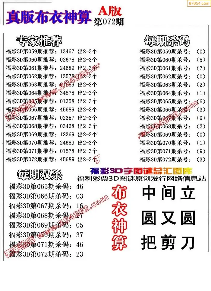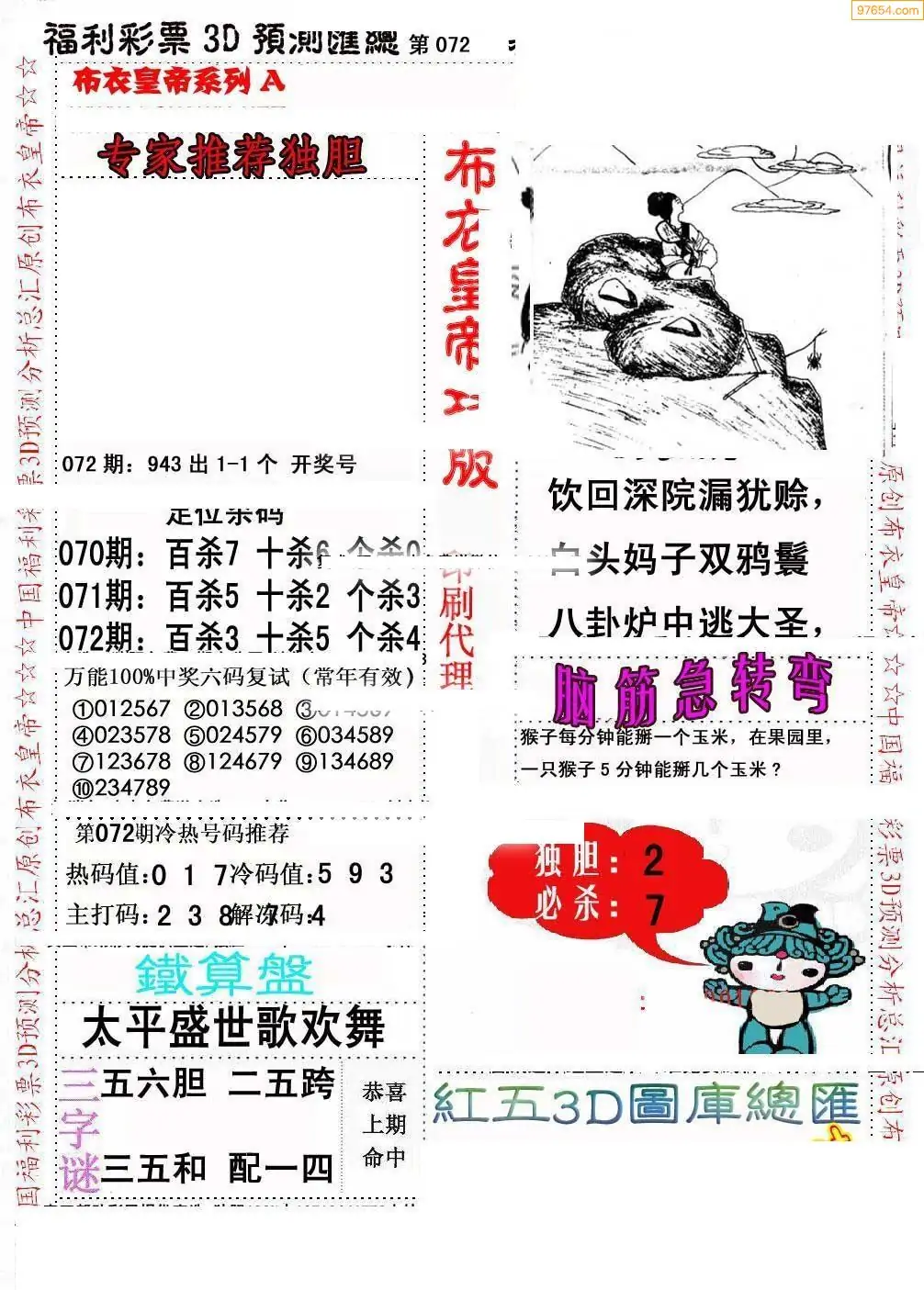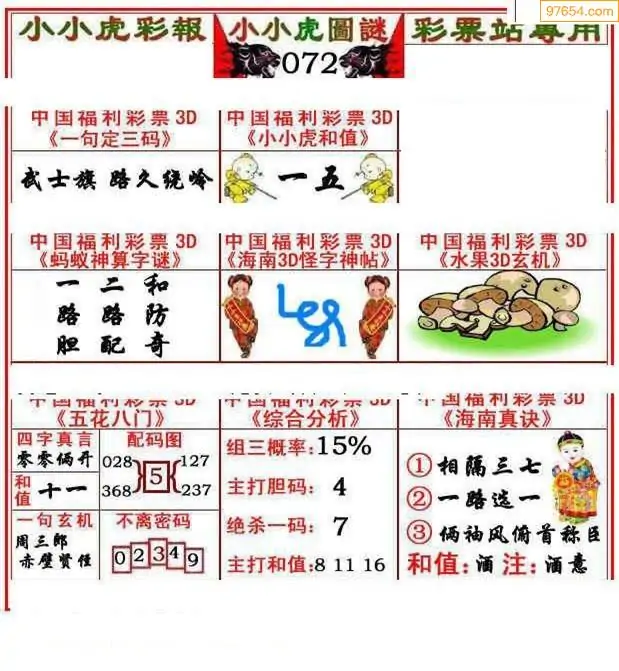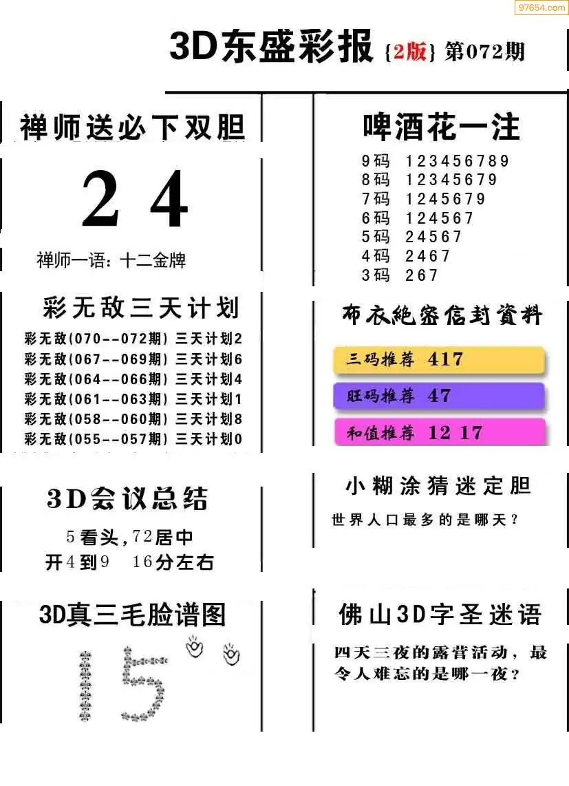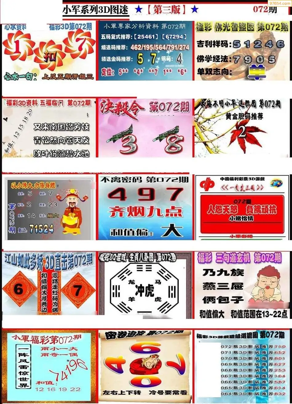 (3)2026072期3D预测总汇全图_福彩3d图谜字谜总汇