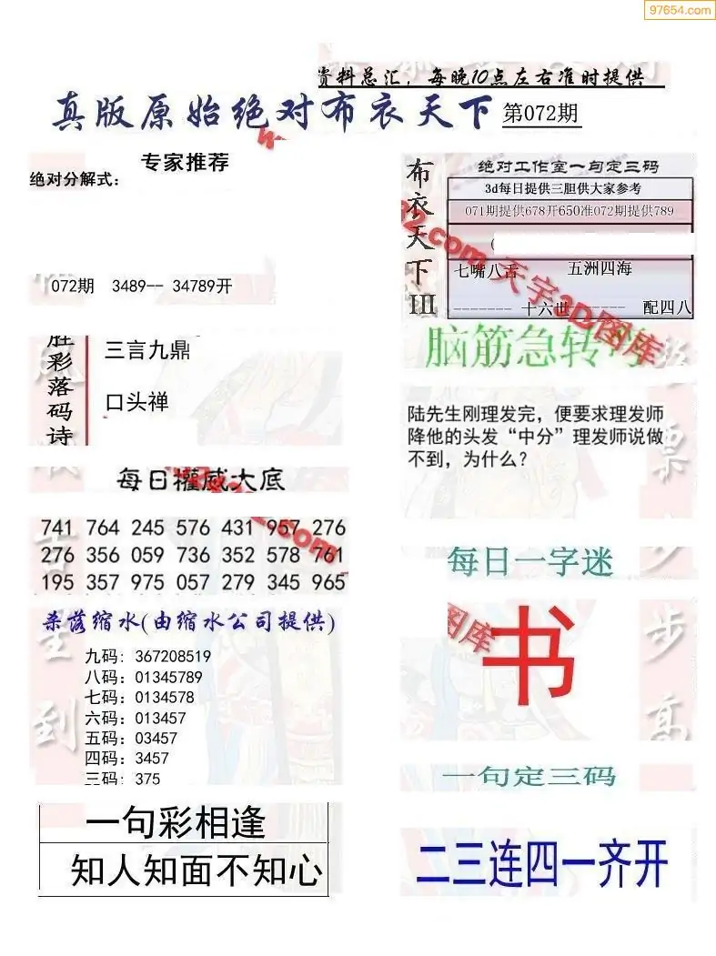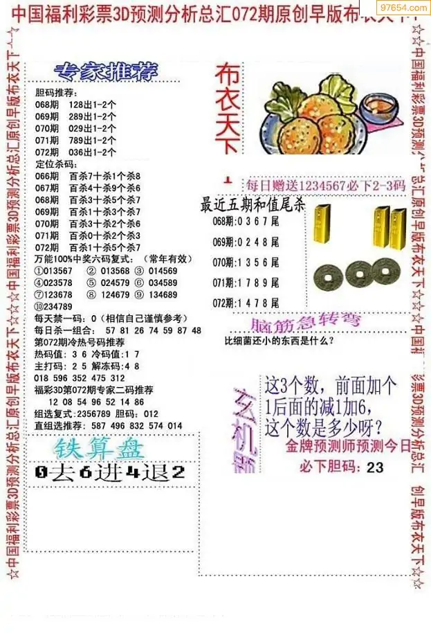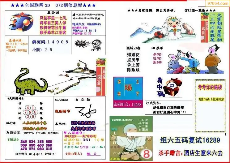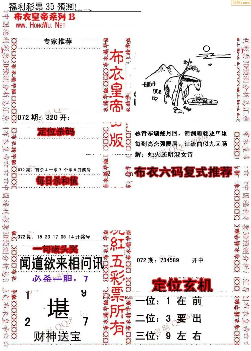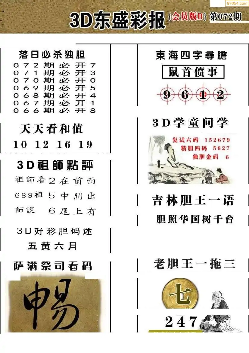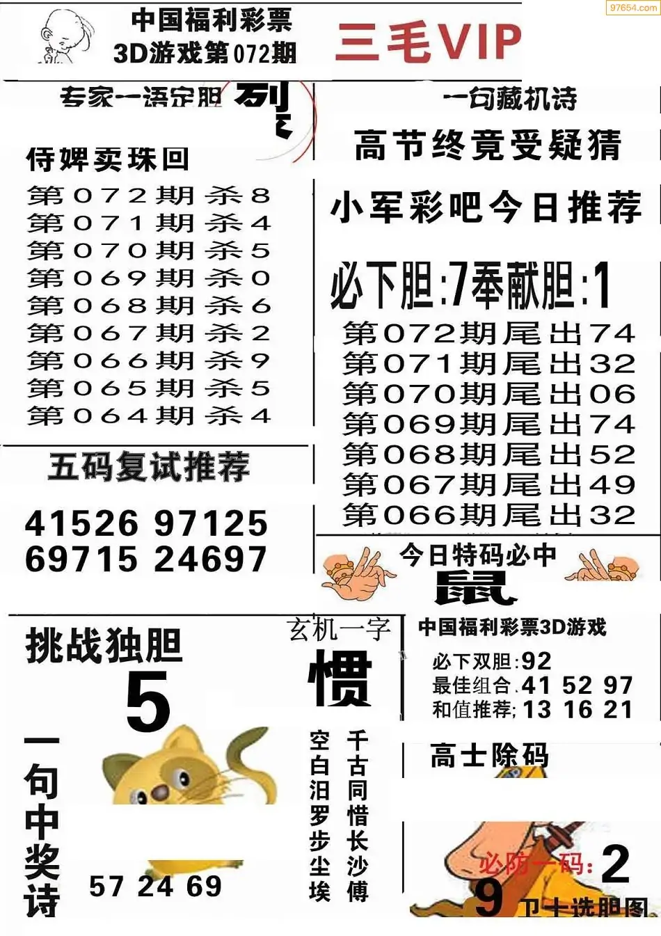 (3)2026072期3D预测总汇全图_福彩3d图谜字谜总汇