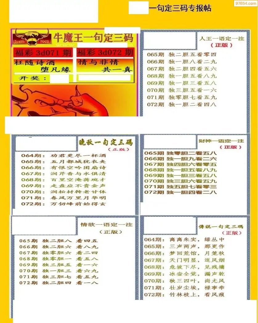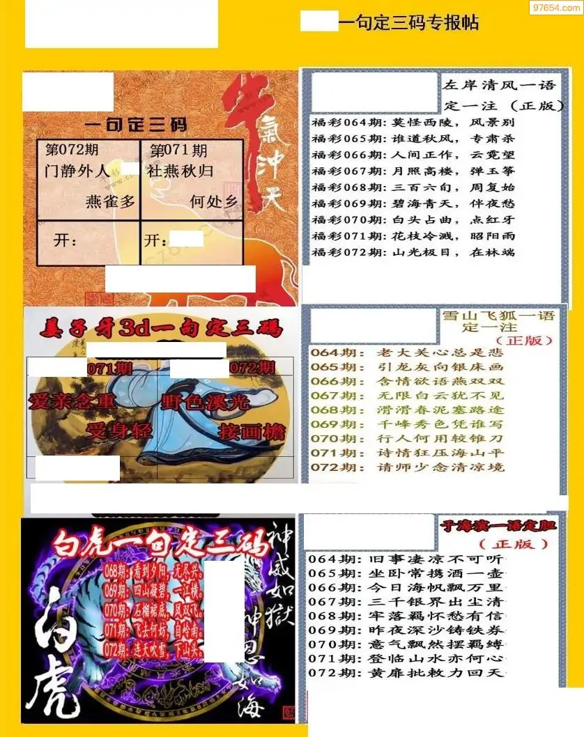 (2)26年071期本期3d图迷汇总_福彩3D图谜总汇图