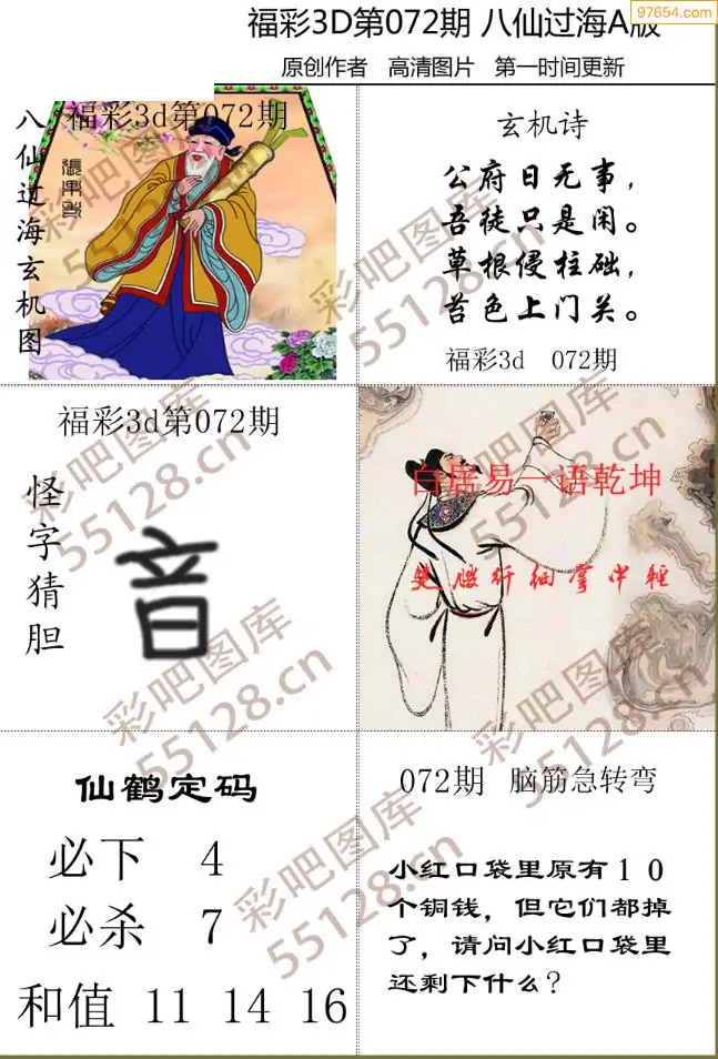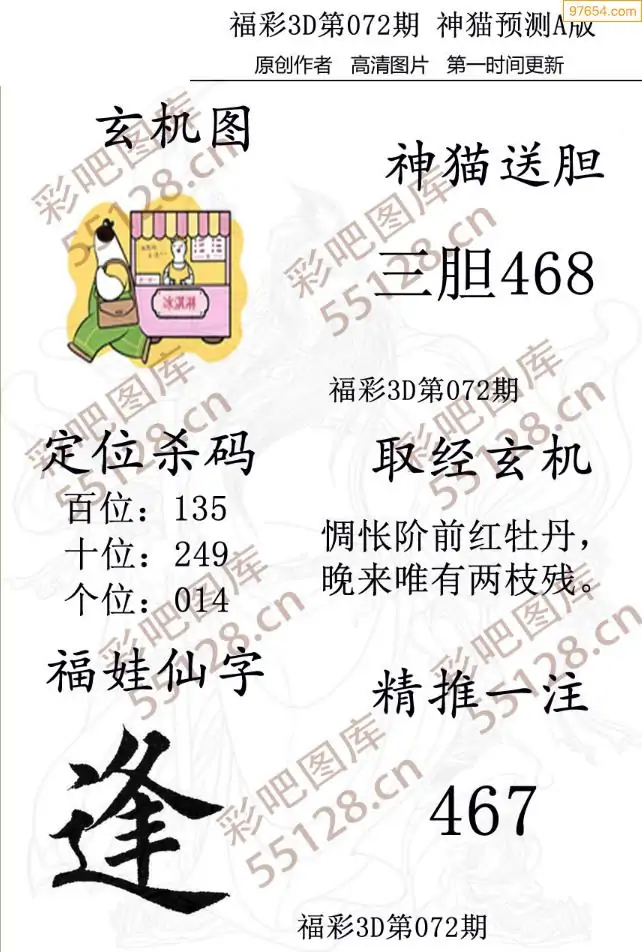 福彩3D072期天牛彩吧套图整合总汇