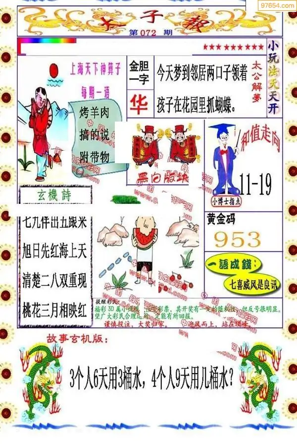 072期3D牛彩预测报+彩吧字谜报
