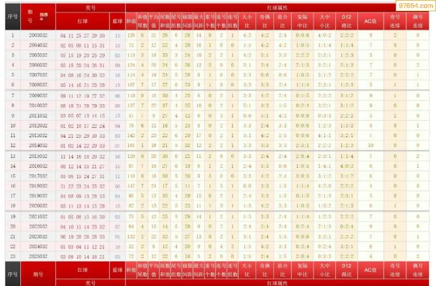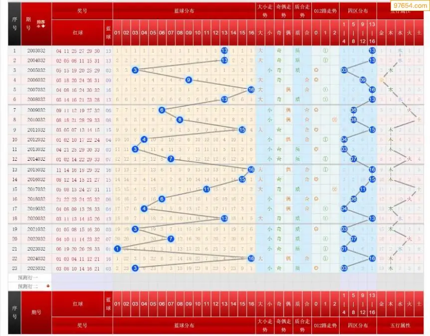032期双色球历史同期图表+走势图