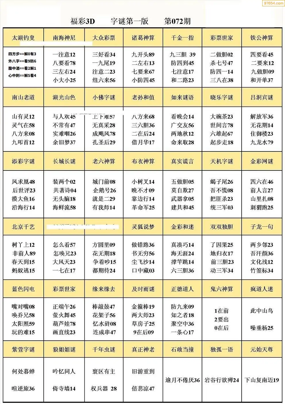 072期3D牛彩预测报+彩吧字谜报