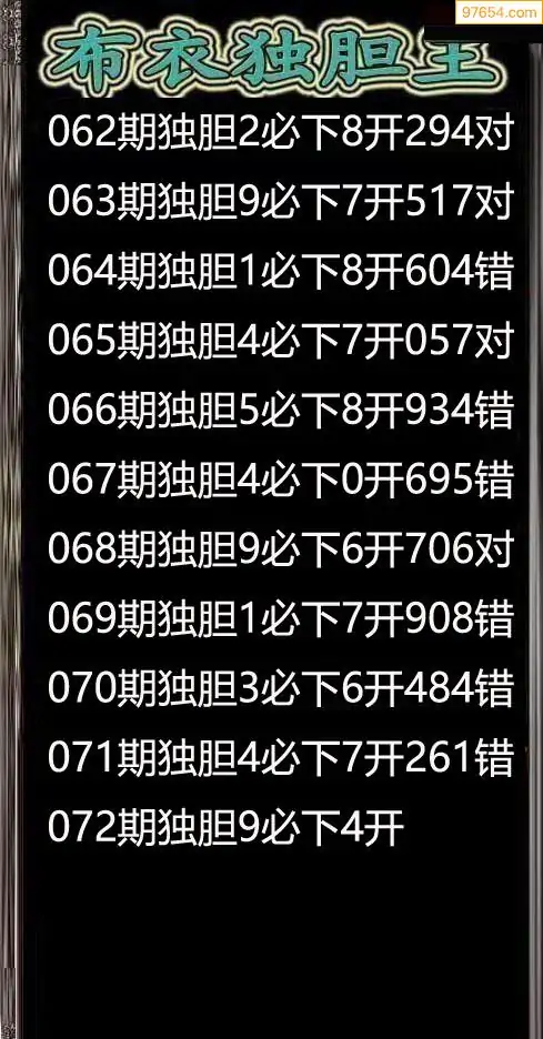 072期97654本站收集胆码出号预测