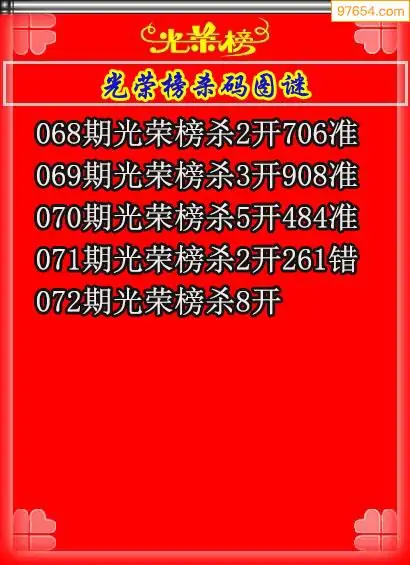 072期97654本站收集杀码出号预测