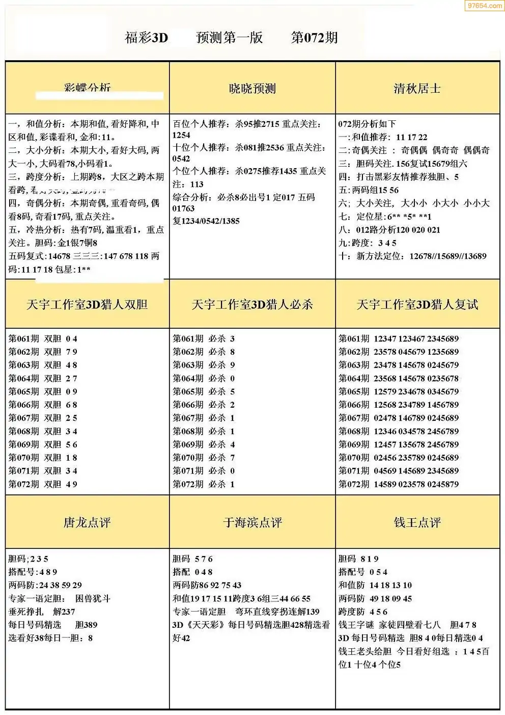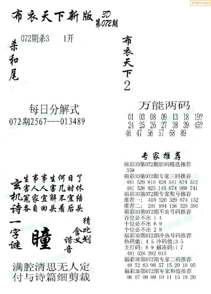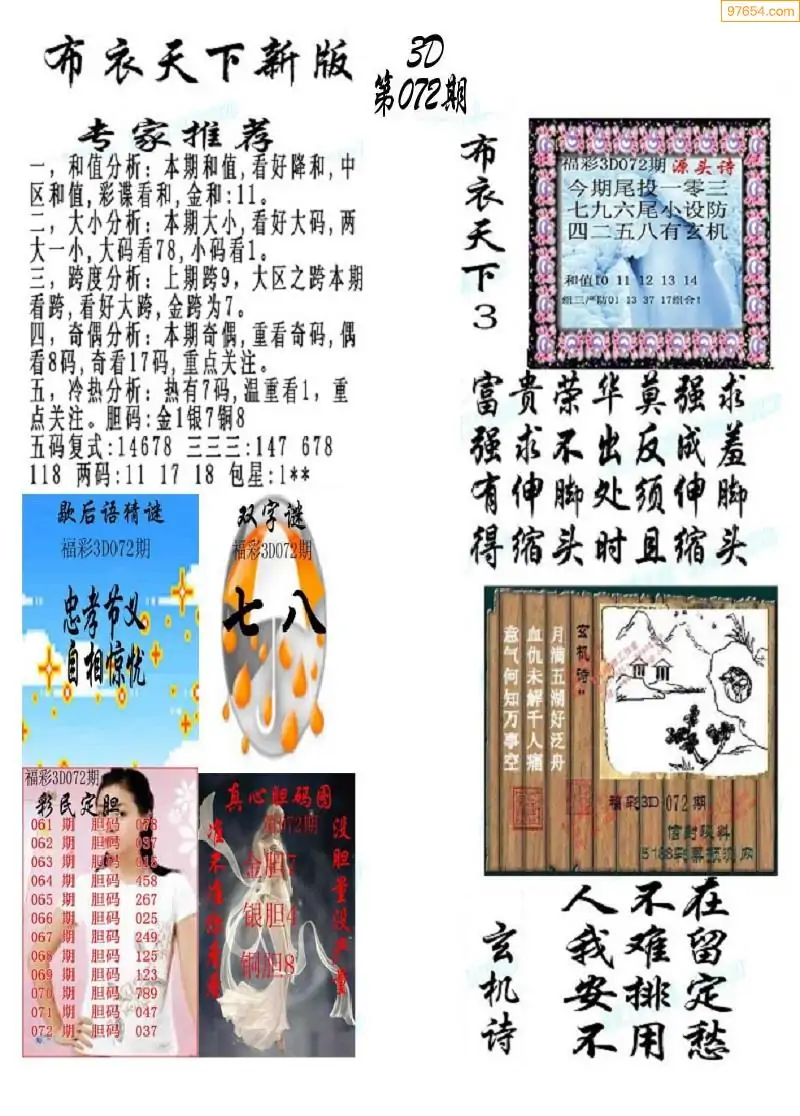 (2)26年072期本期3d图迷汇总_福彩3D图谜总汇图