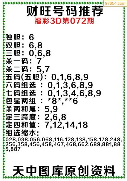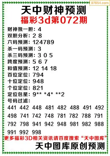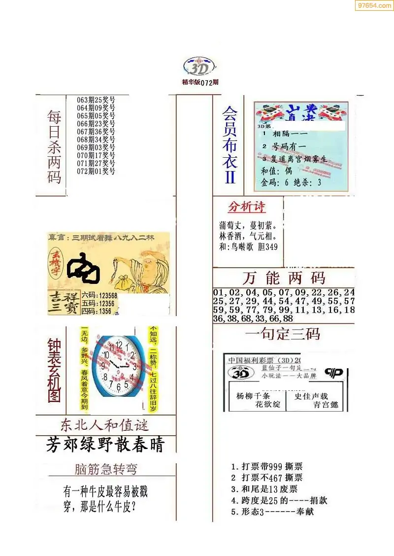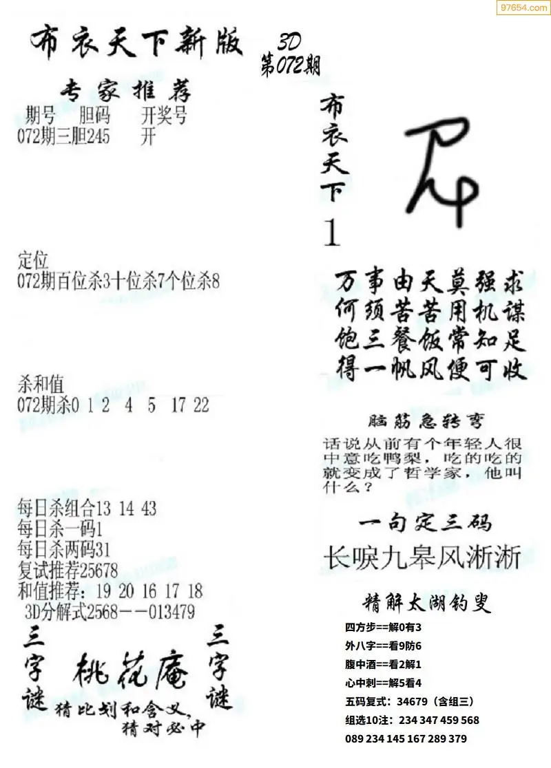 (3)2026072期3D预测总汇全图_福彩3d图谜字谜总汇