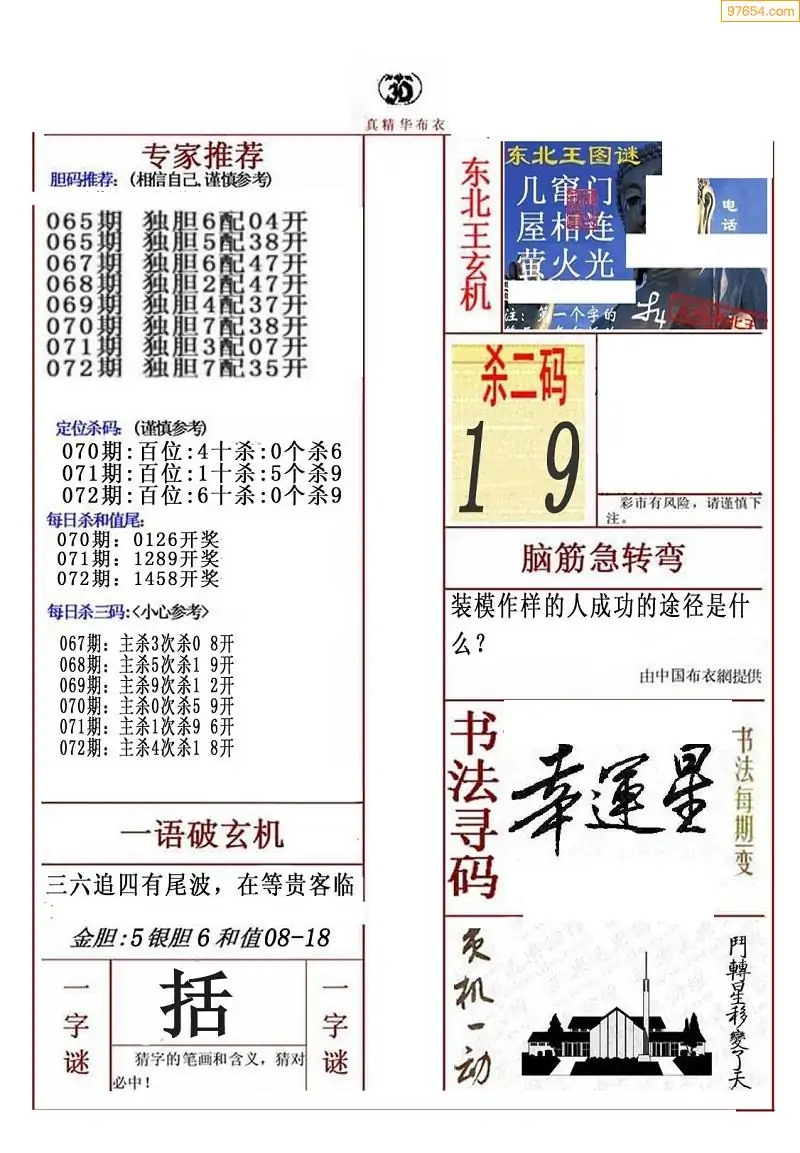 (5)26年071期福彩字谜图谜总汇