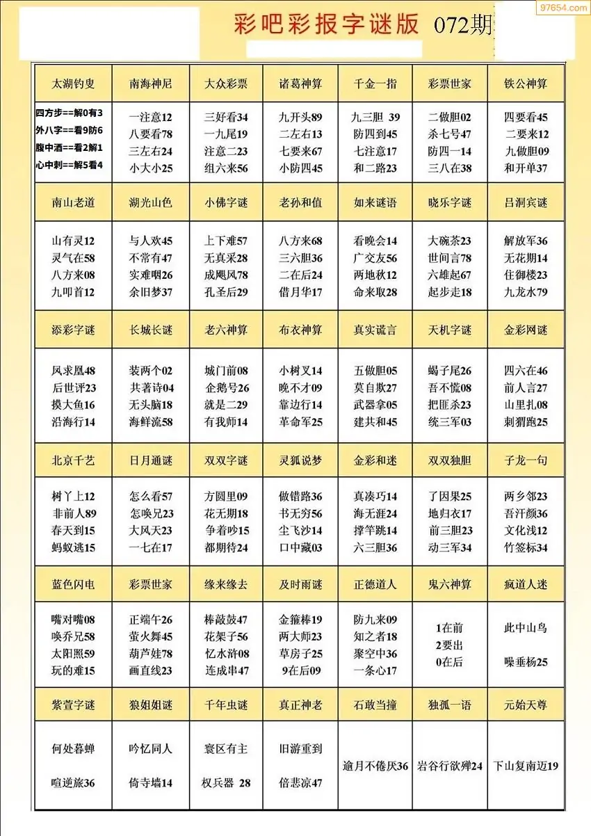 (4)26年072期本站原创总汇全图_福彩图谜字谜总汇大全