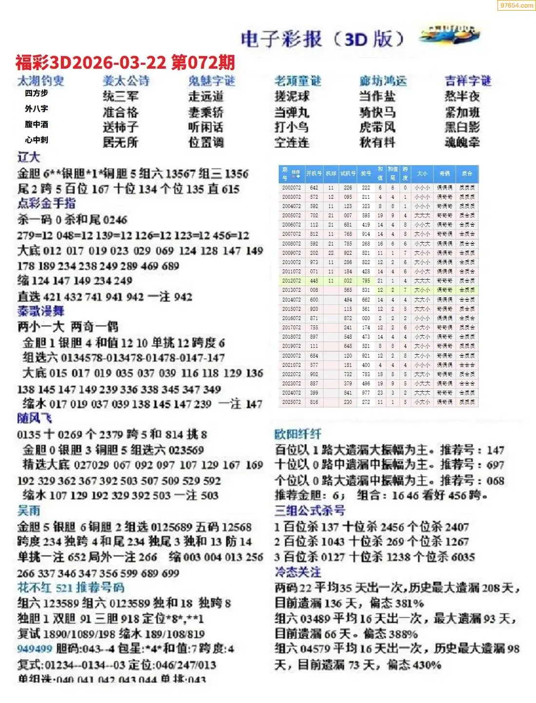 (8)26年072期今日3d各类彩报汇总