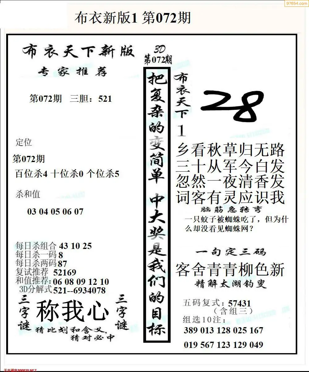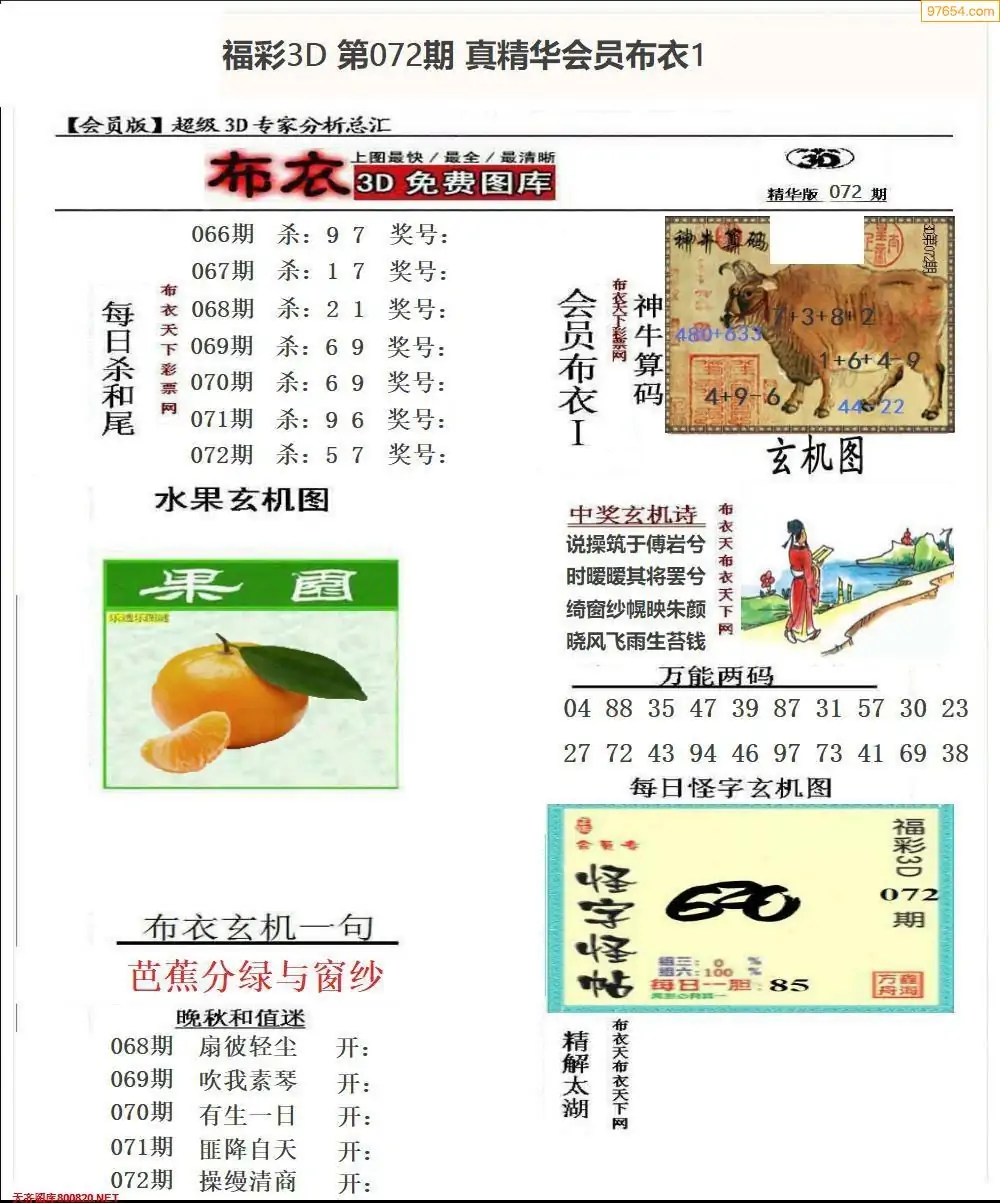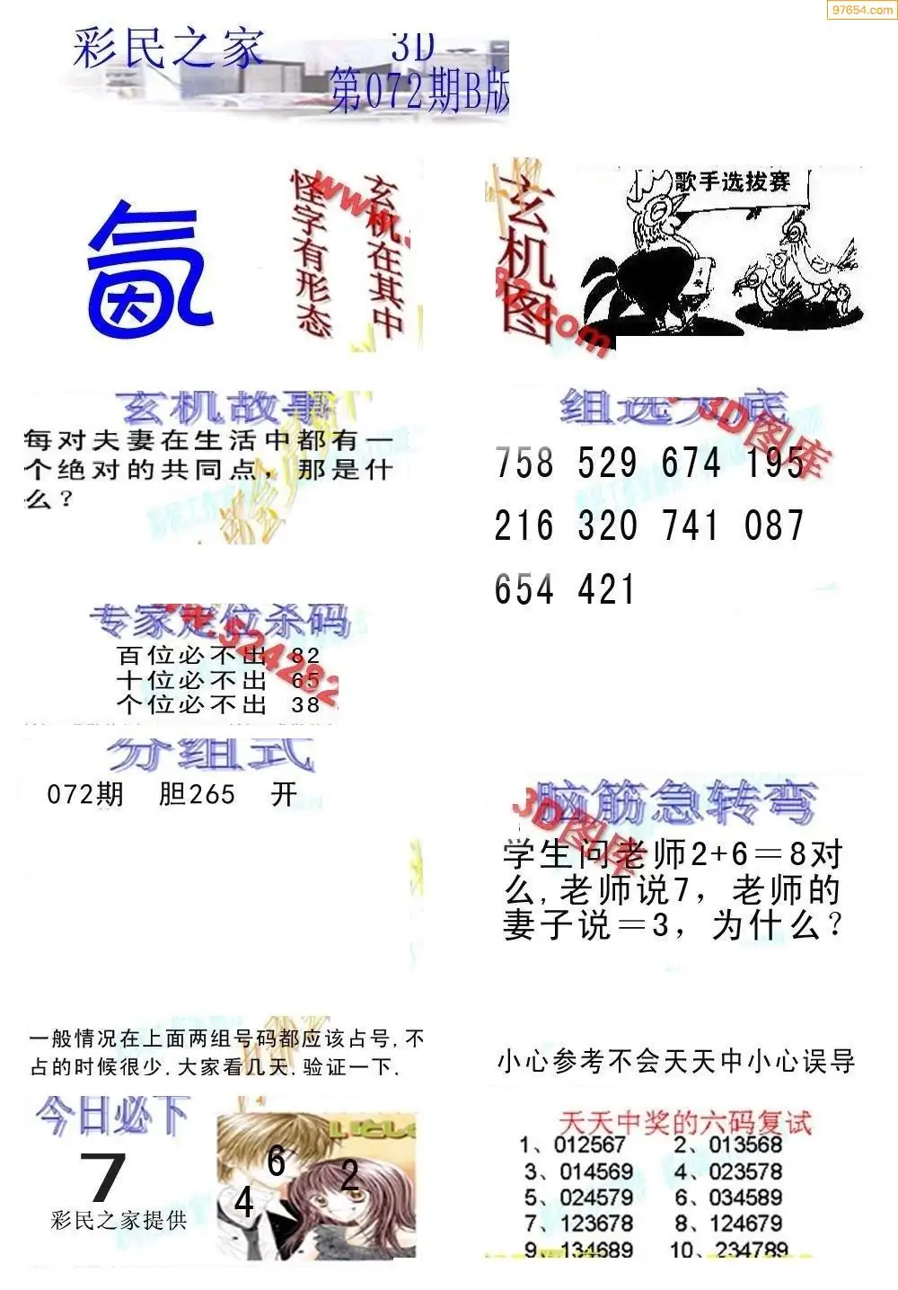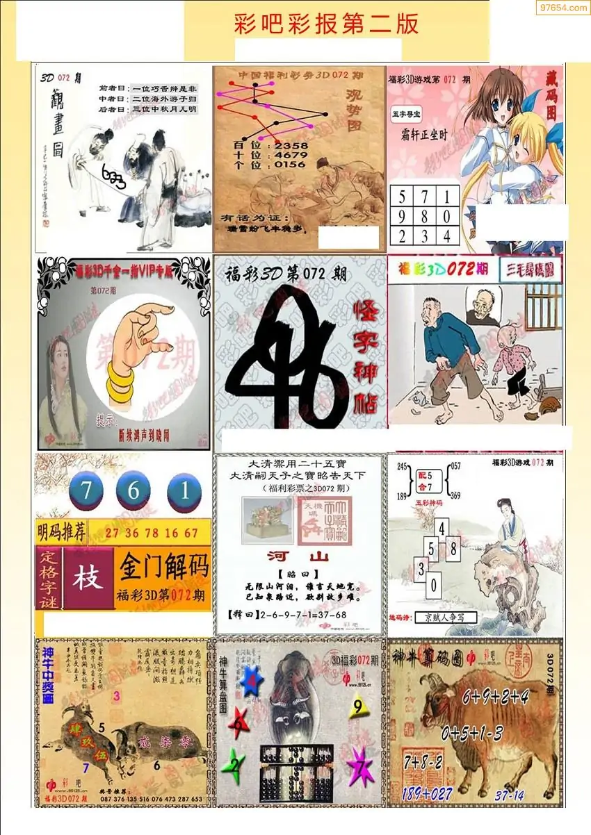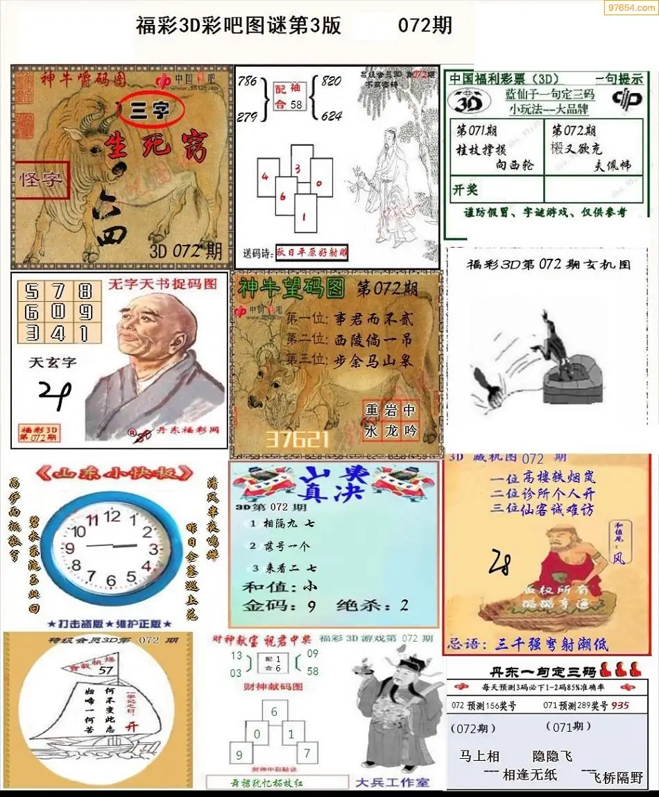 (3)2026072期3D预测总汇全图_福彩3d图谜字谜总汇