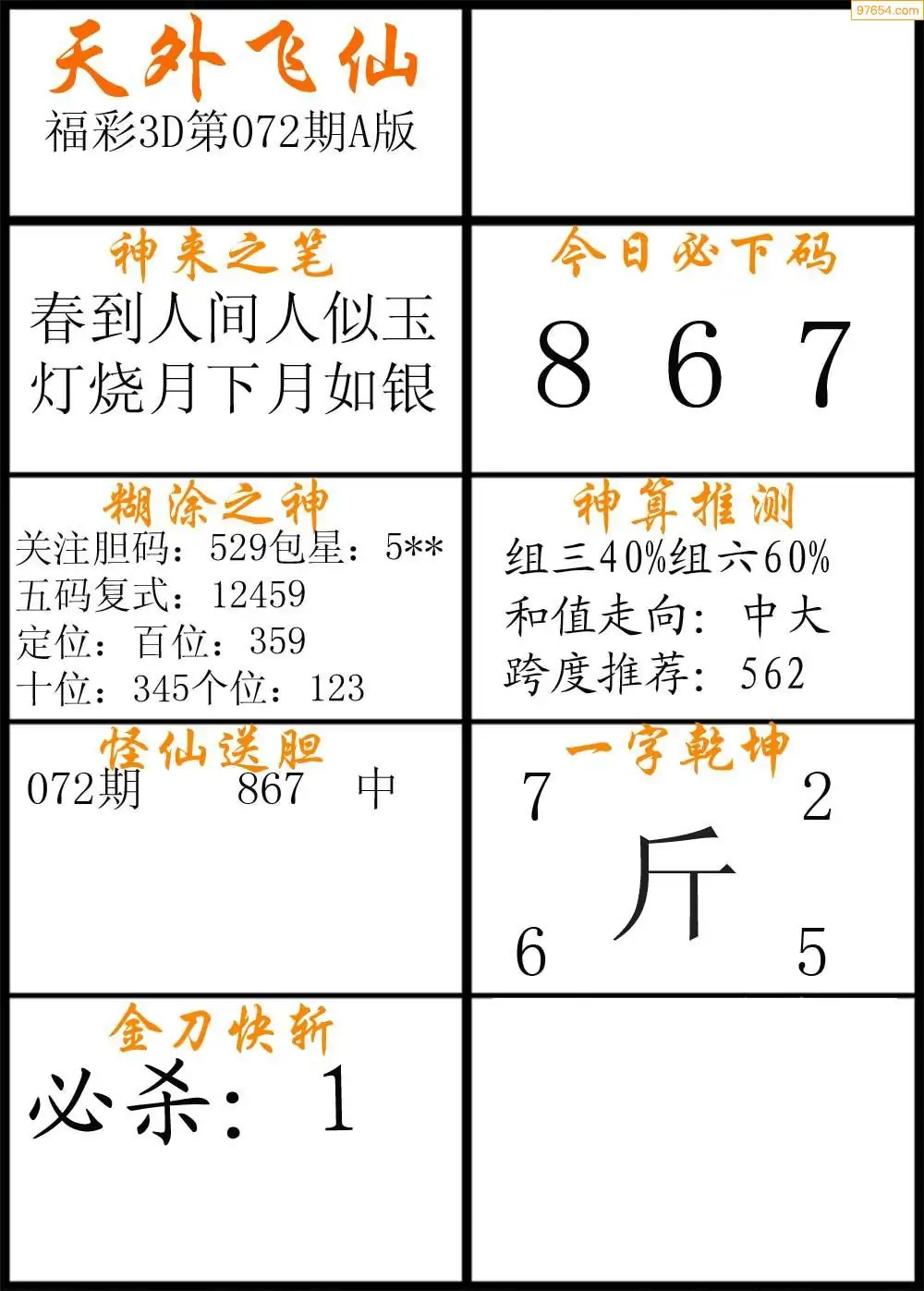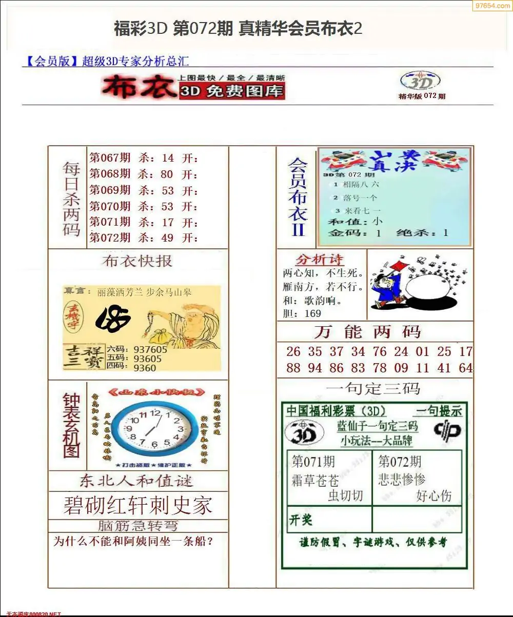 (2)26年072期本期3d图迷汇总_福彩3D图谜总汇图