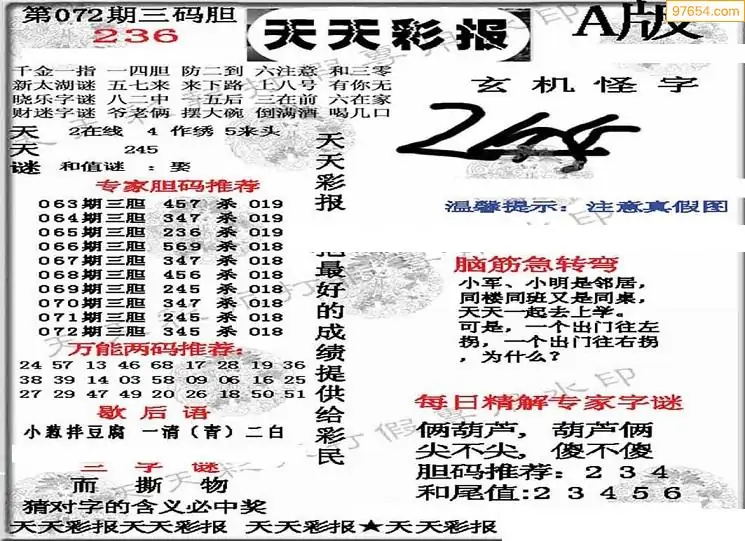 (5)26年072期福彩字谜图谜总汇