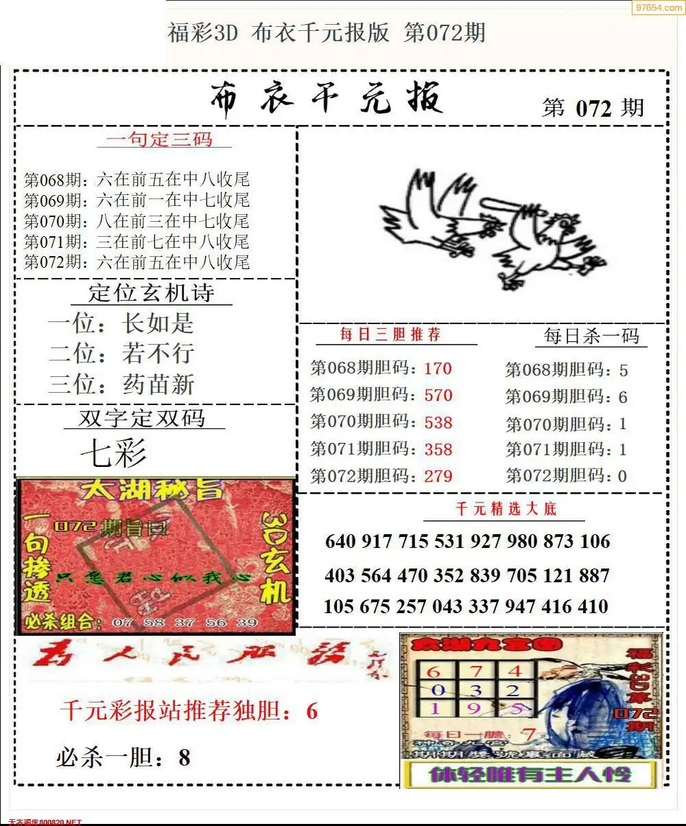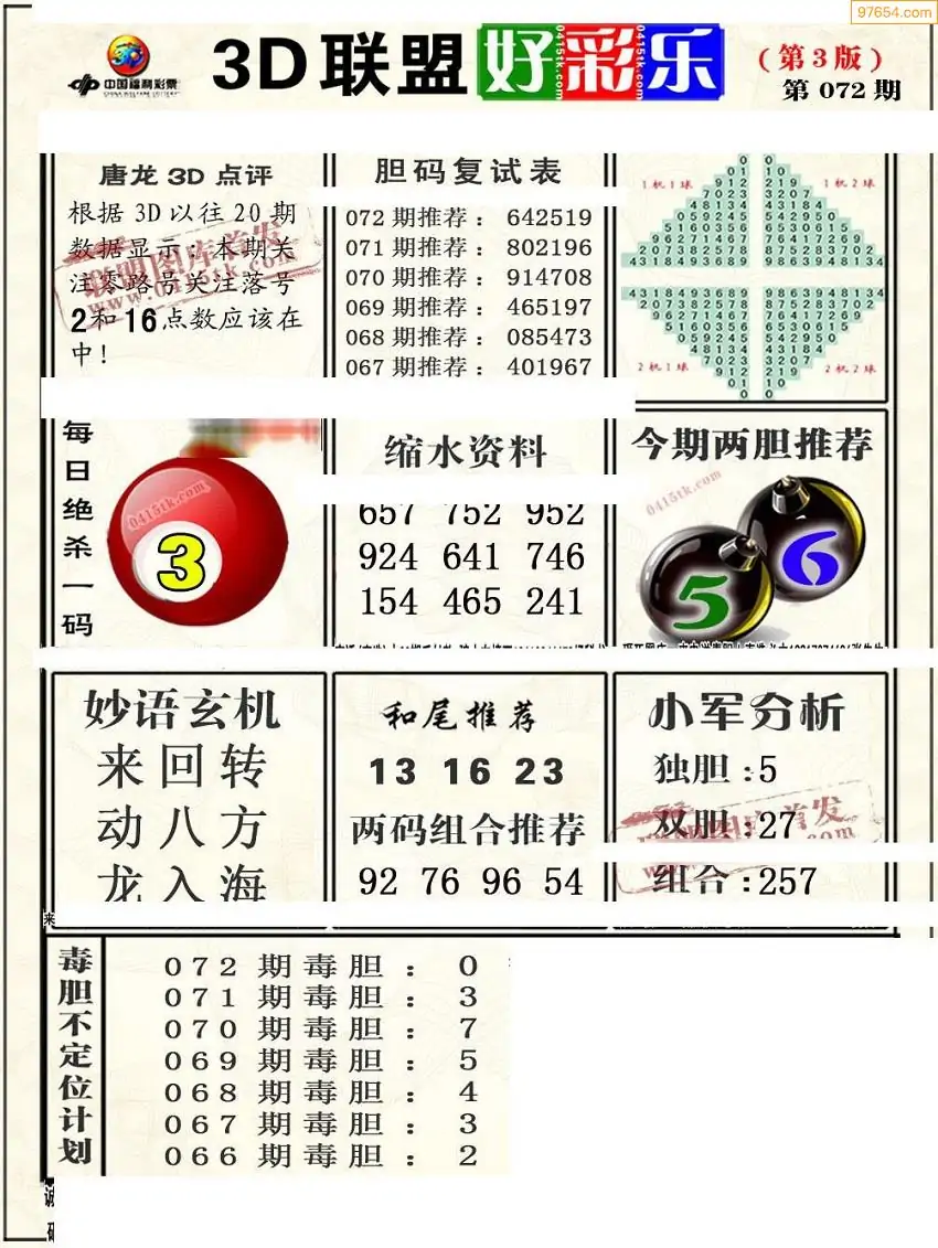 (8)26年072期今日3d各类彩报汇总