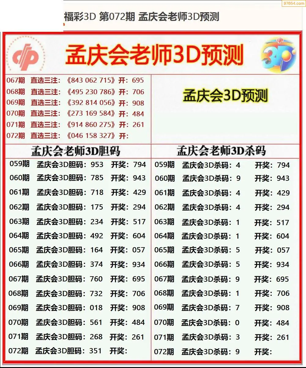 (8)26年071期今日3d各类彩报汇总