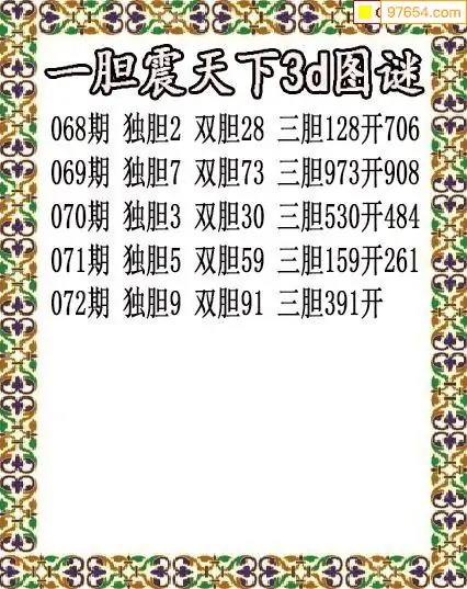 2026072期彩彩网3d原创图迷搜集(天中整理)