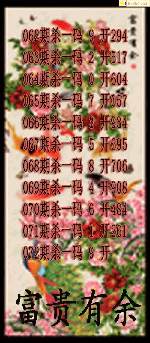 072期97654本站收集杀码出号预测