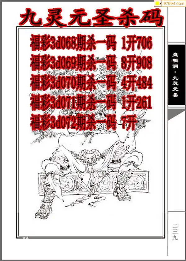 牛彩网072期福彩杀码图汇总 杀:71
