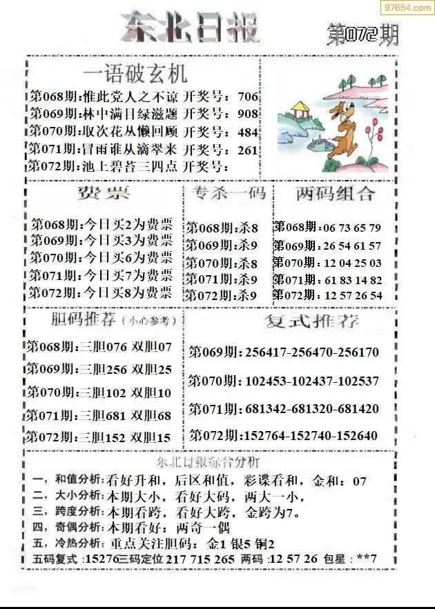 26年072期3d选号彩报图谜画谜