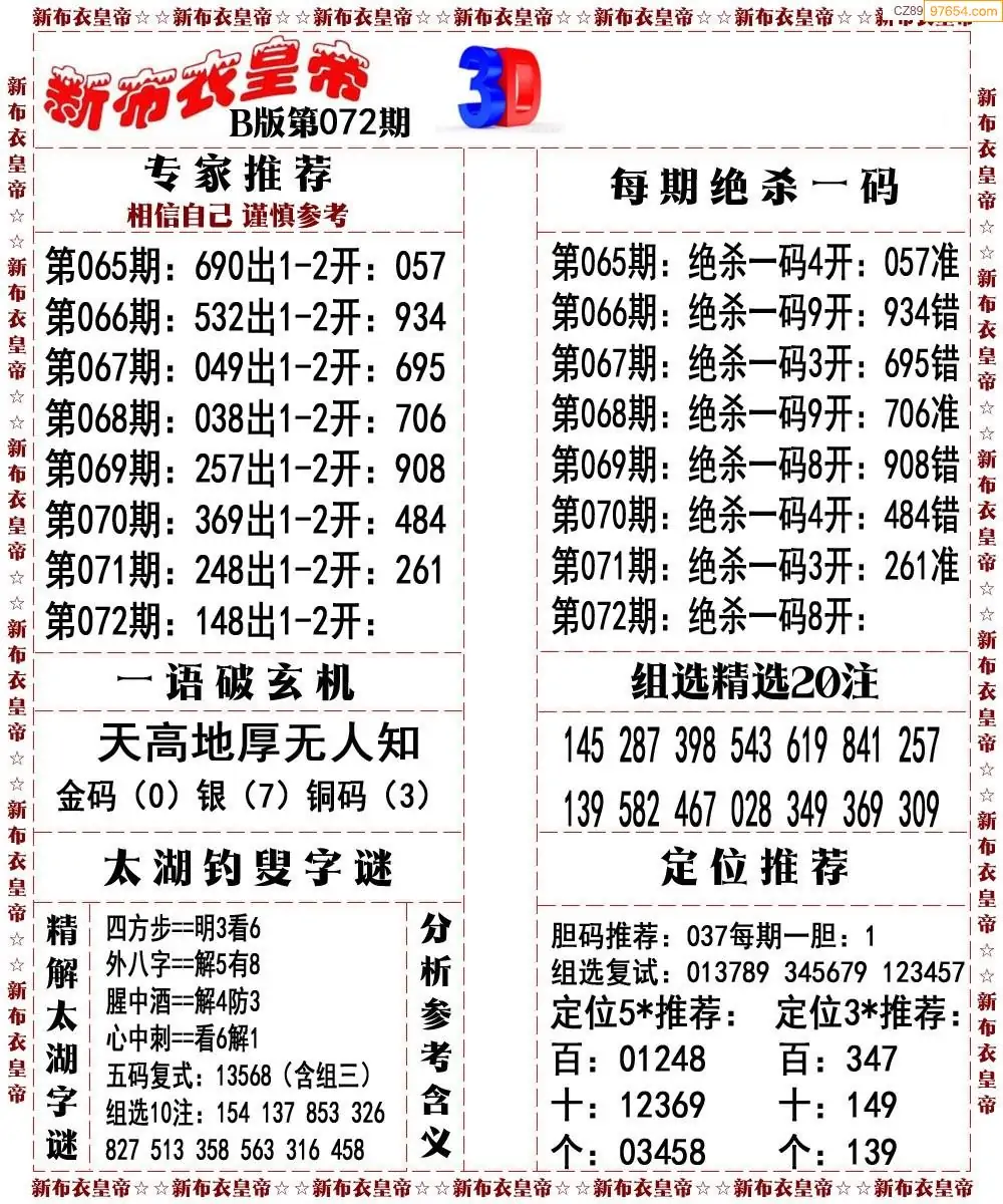 26072期3d新布衣皇帝早间四版