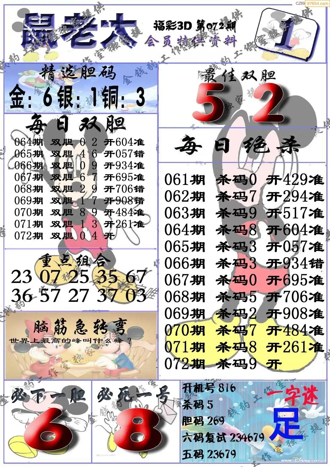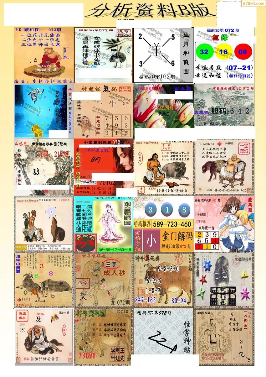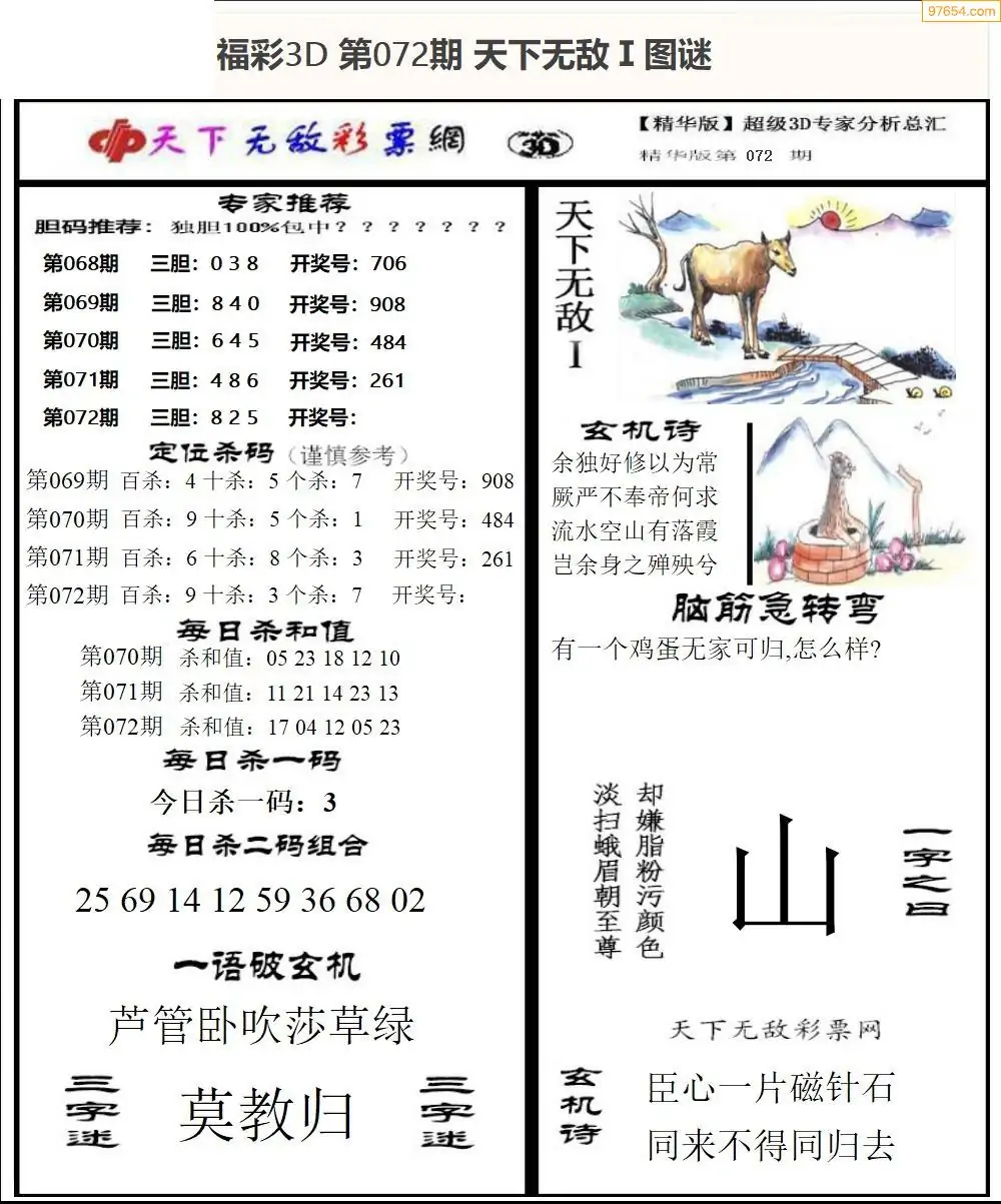 (3)2026072期3D预测总汇全图_福彩3d图谜字谜总汇