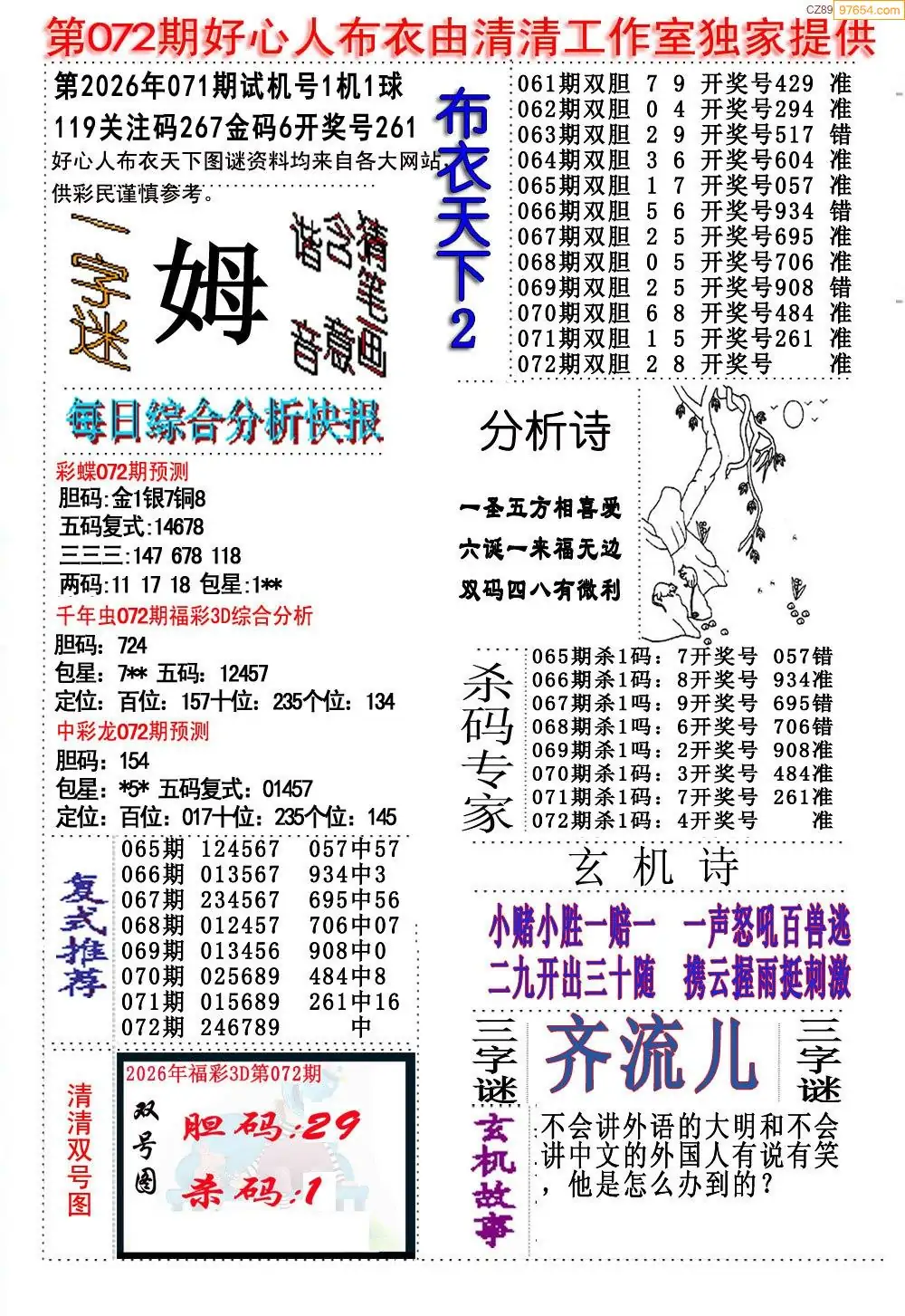 (5)26年072期福彩字谜图谜总汇