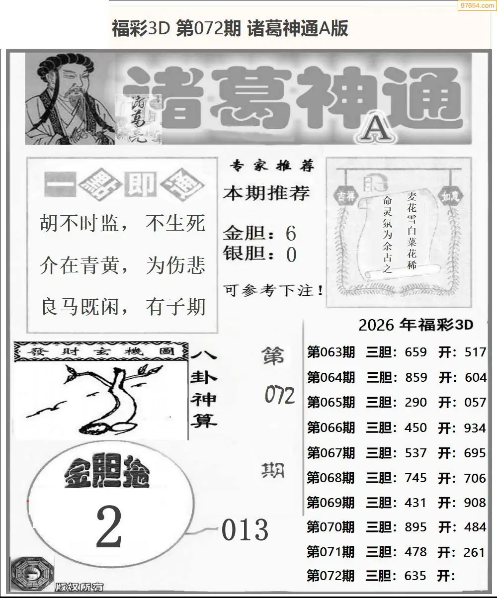 (2)26年072期本期3d图迷汇总_福彩3D图谜总汇图