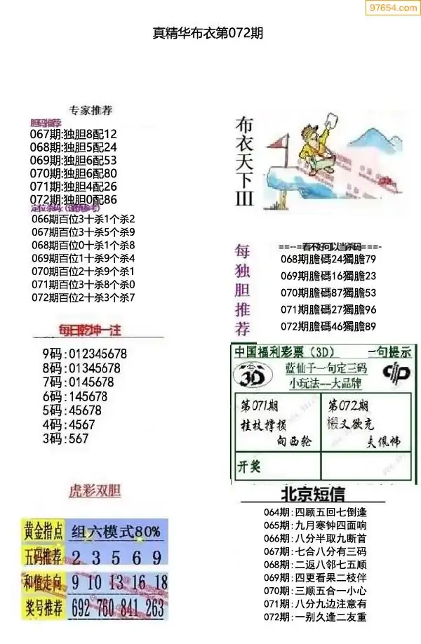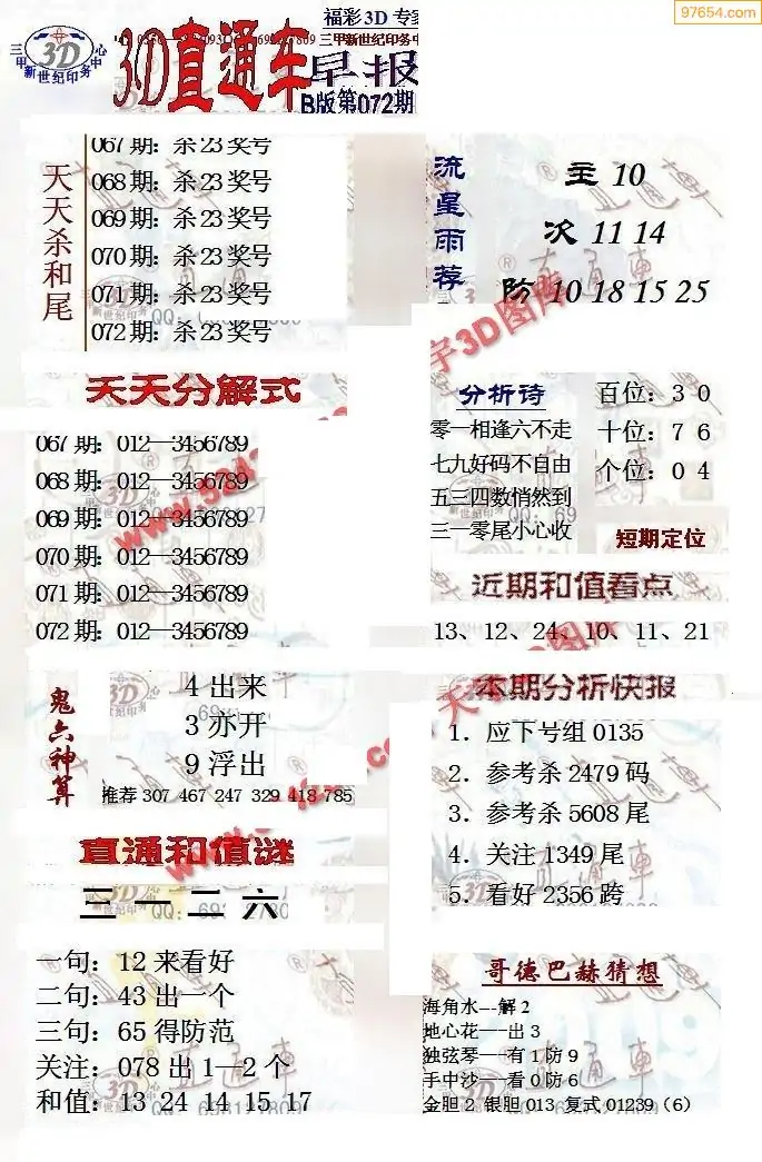 (8)26年071期今日3d各类彩报汇总