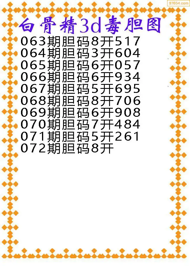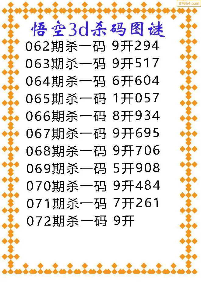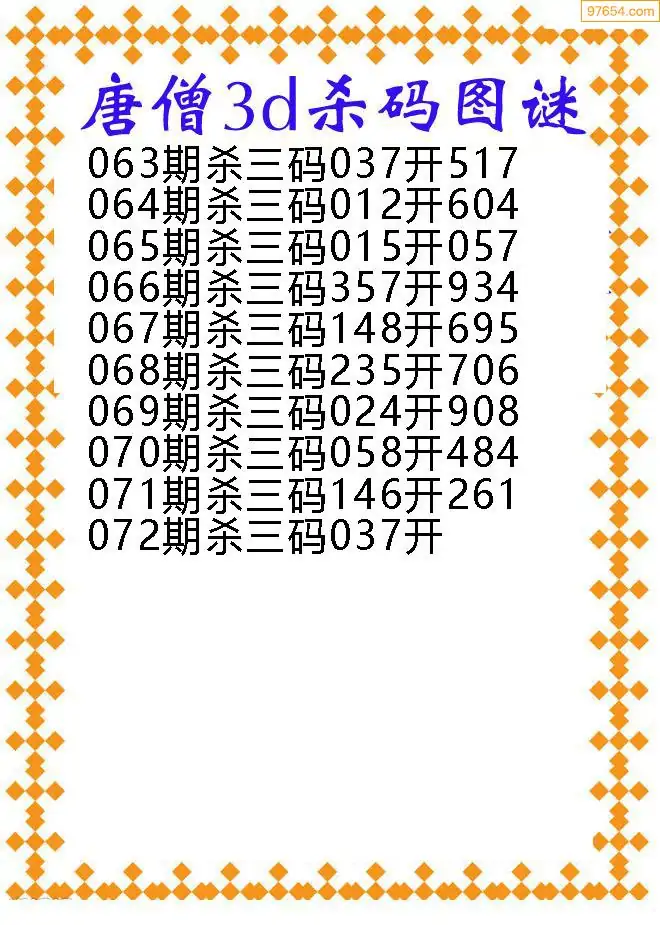 (3)2026072期3D预测总汇全图_福彩3d图谜字谜总汇