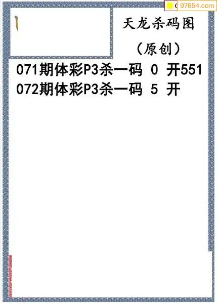 26年072期天龙体彩P3杀码图谜