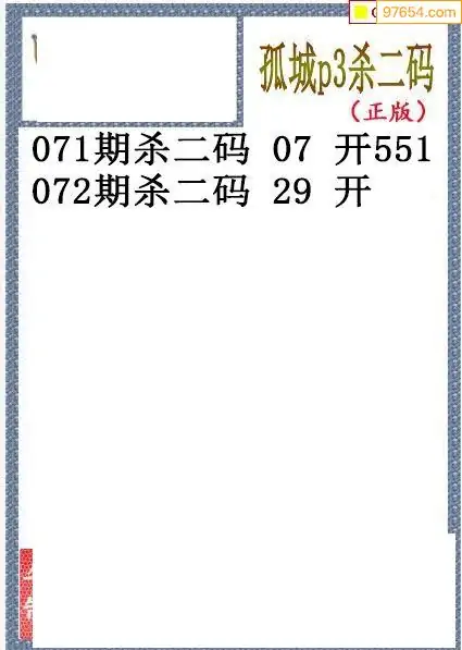 26年072期孤城本期杀码排3图谜