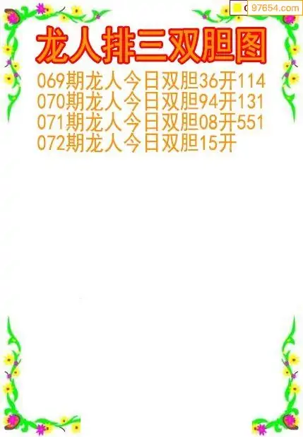 26072期龙人排列3双胆图