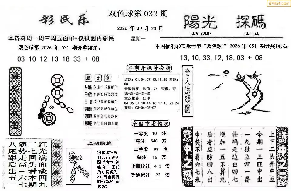 26年双色球032期彩民乐+阳光探码图谜